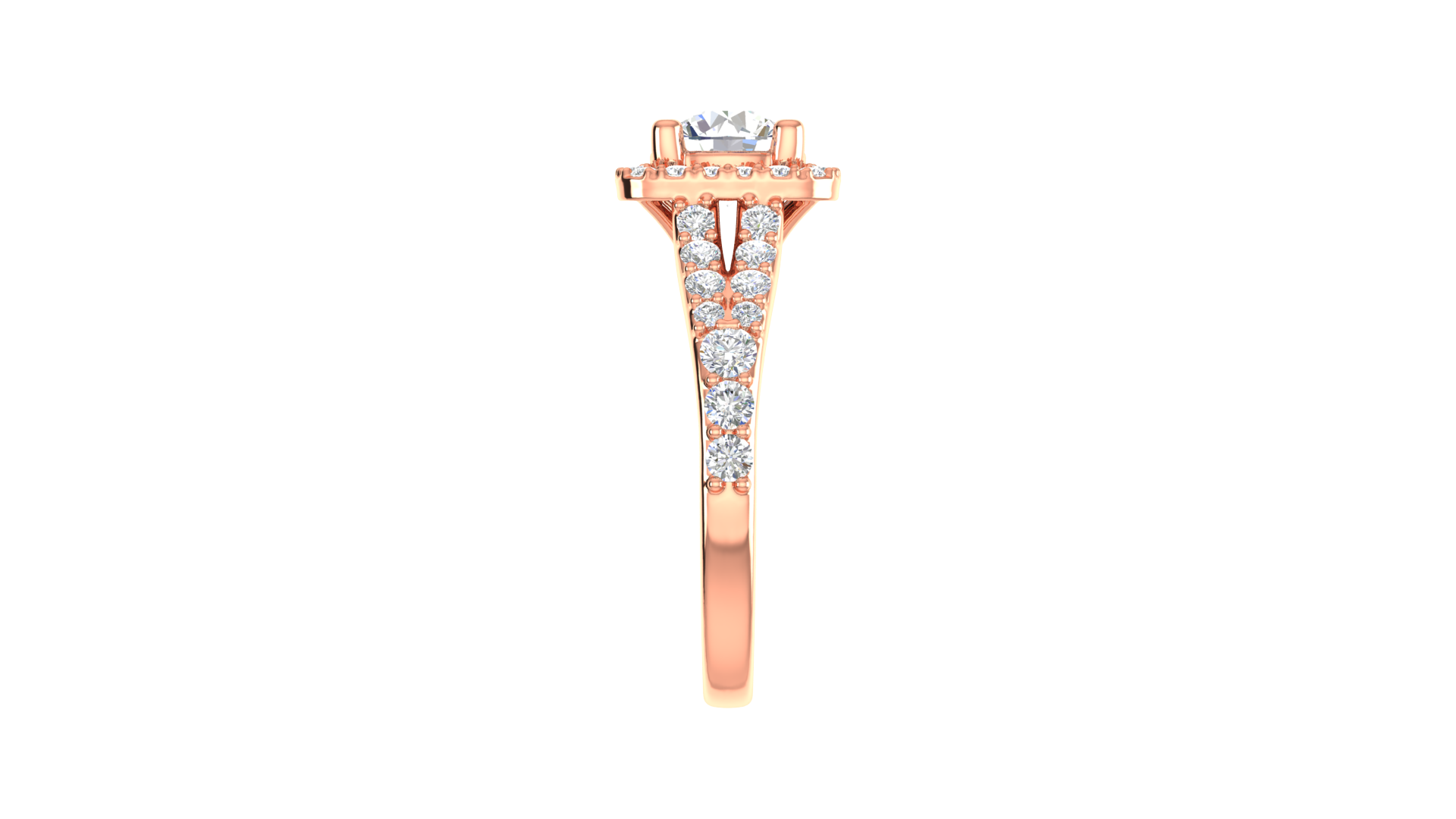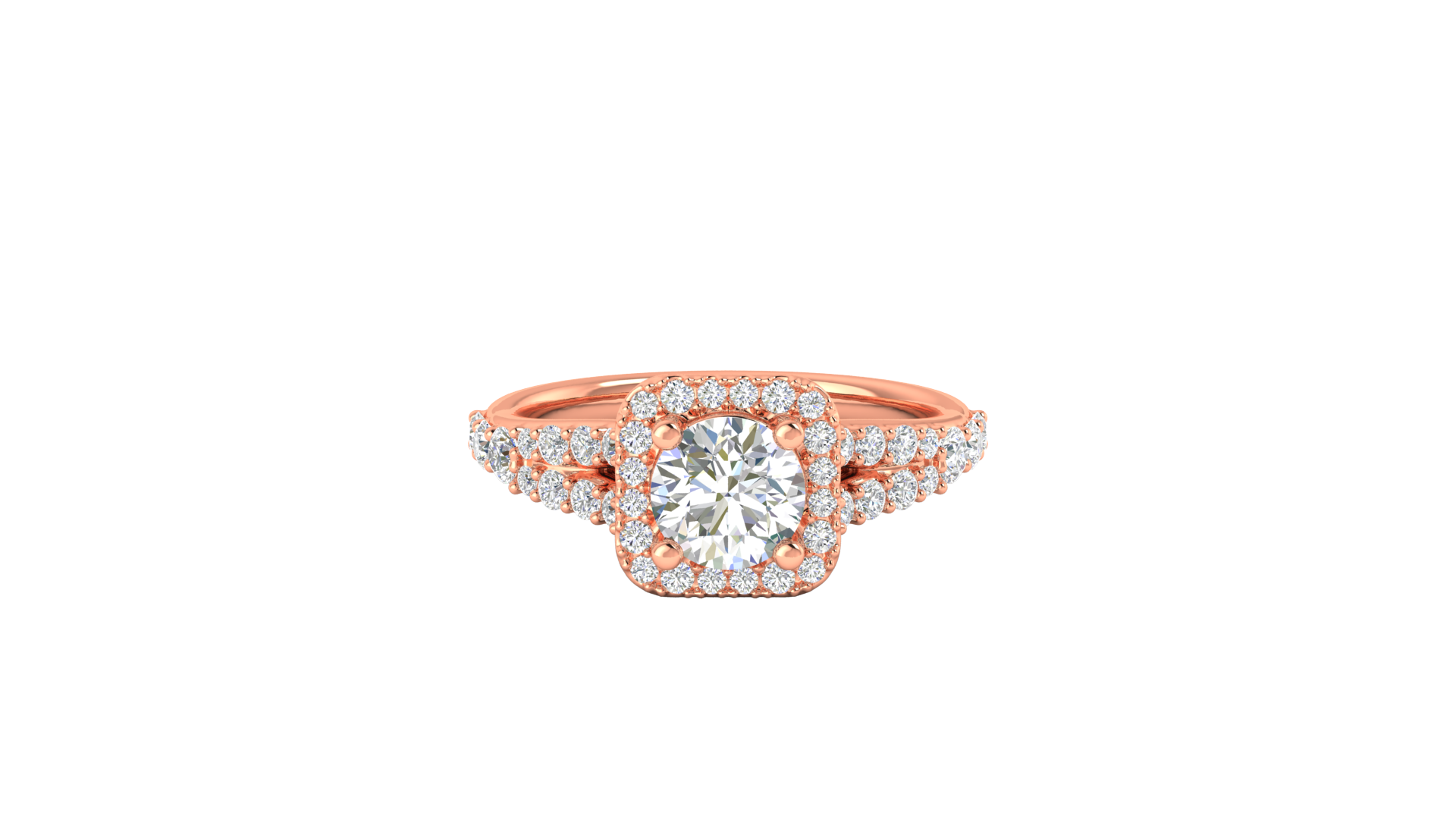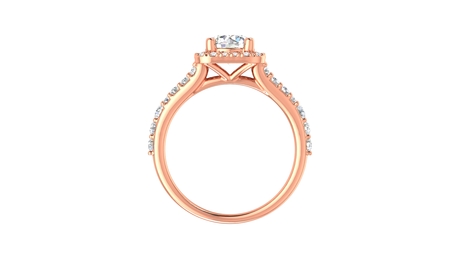 1.00 Carat Round-Cut Halo Engagement Ring With Pavé Diamond Band In 14K Rose Gold