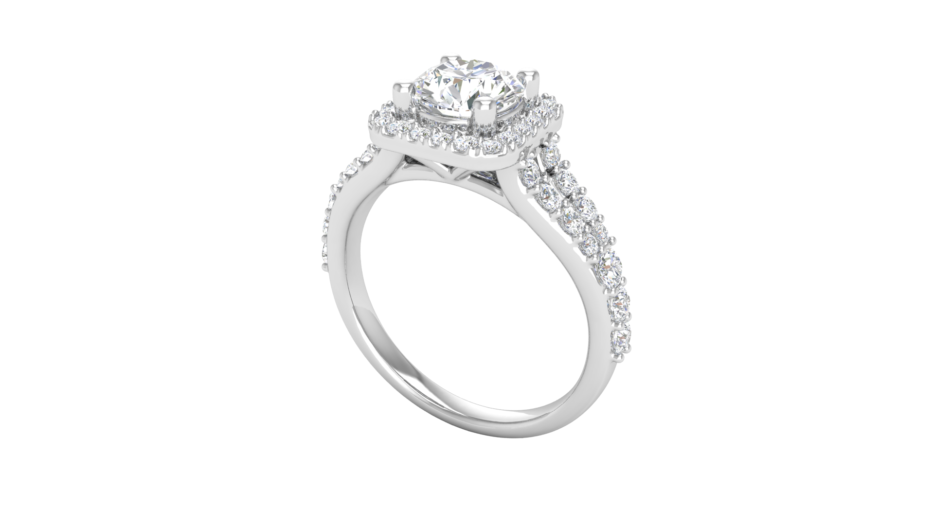 Celebrate your love with this breathtaking 1ct halo engagement ring. Featuring a brilliant 1-carat center stone surrounded by a shimmering halo of diamonds, paired with a pavé-set diamond band for a luxurious finish. This timeless design exudes elegance and sparkle, perfect for making your proposal unforgettable. Explore the beauty of this exquisite ring today!