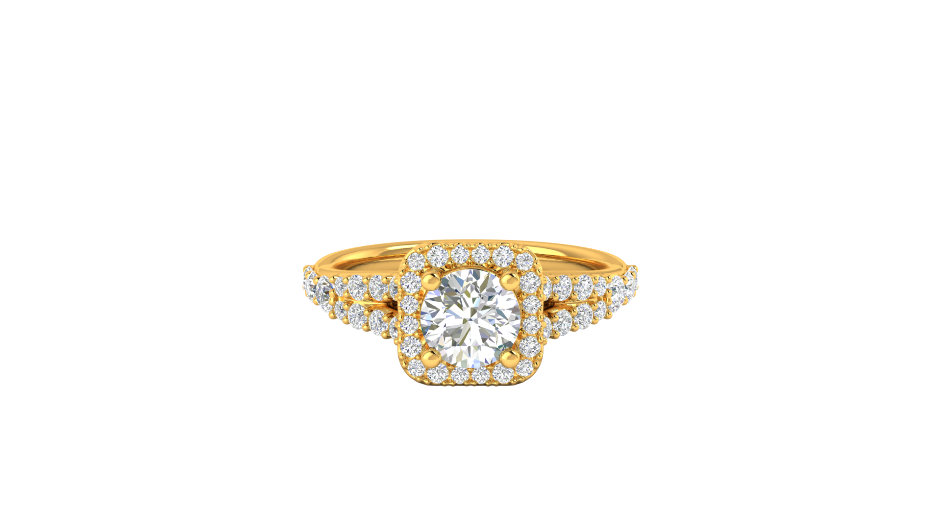 Celebrate your love with this breathtaking 1ct halo engagement ring. Featuring a brilliant 1-carat center stone surrounded by a shimmering halo of diamonds, paired with a pavé-set diamond band for a luxurious finish. This timeless design exudes elegance and sparkle, perfect for making your proposal unforgettable. Explore the beauty of this exquisite ring today!