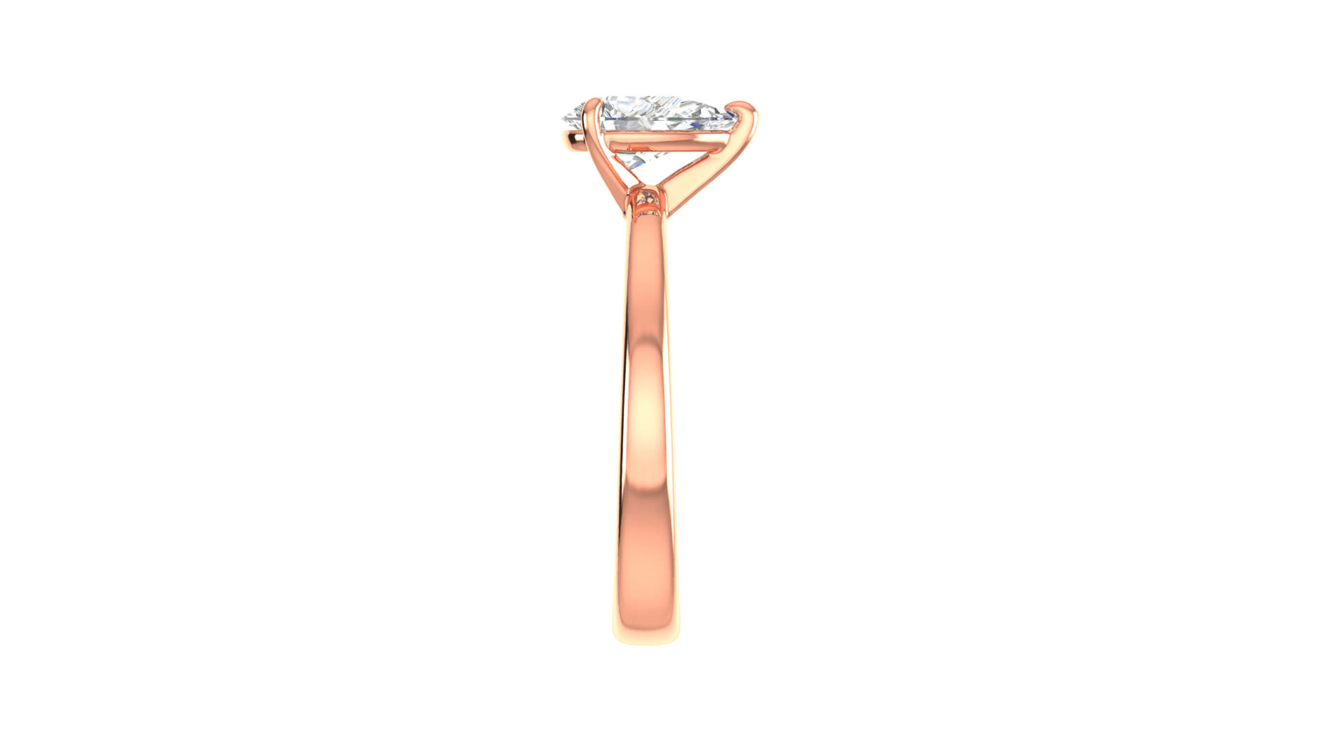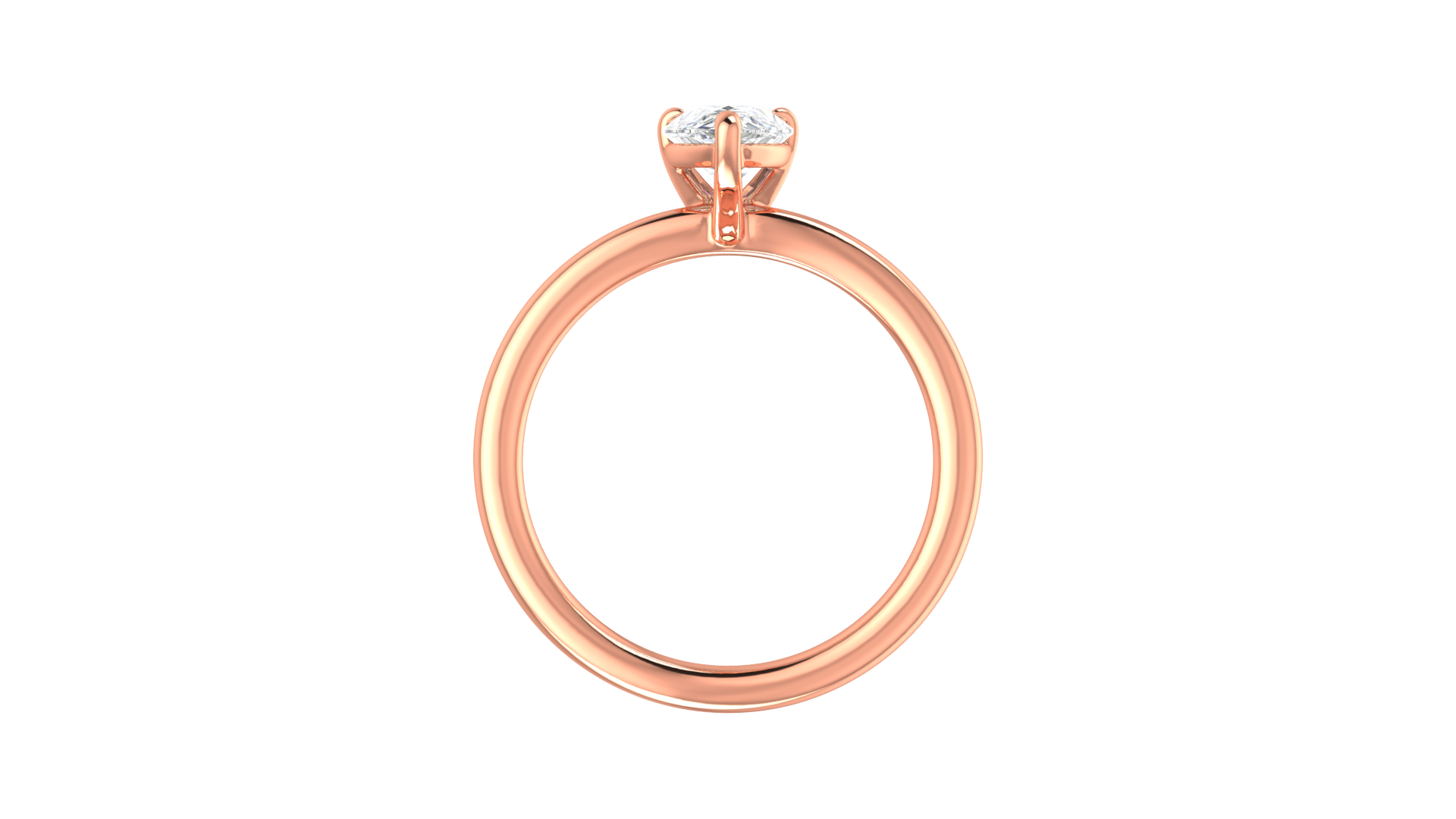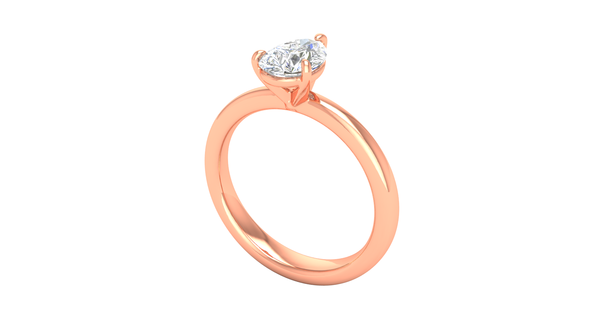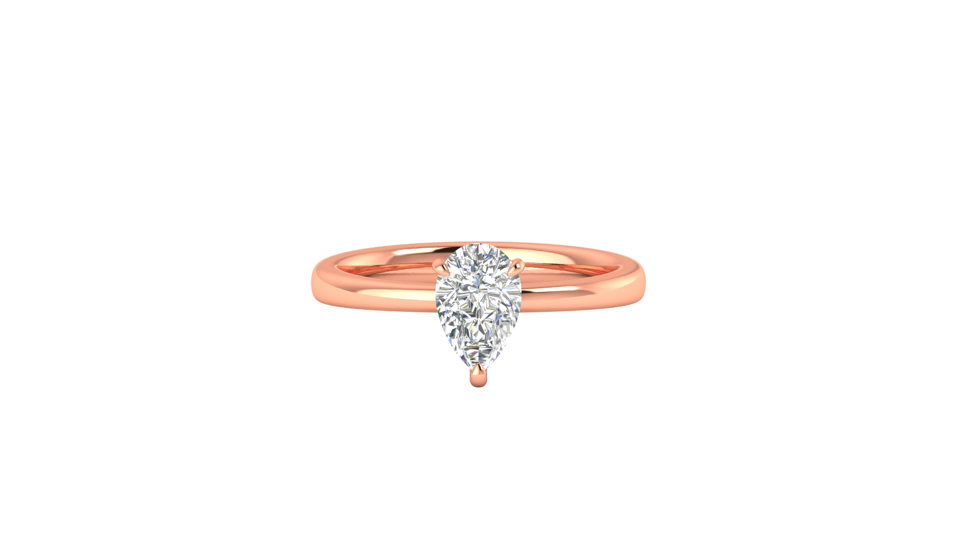 This elegant solitaire engagement ring features a stunning 1.00 CTW pear-cut diamond, set in a secure three-prong setting. The graceful pear shape adds a touch of romance, while the polished rose gold band complements the diamond’s brilliance. A timeless choice for those who love delicate and sophisticated designs.