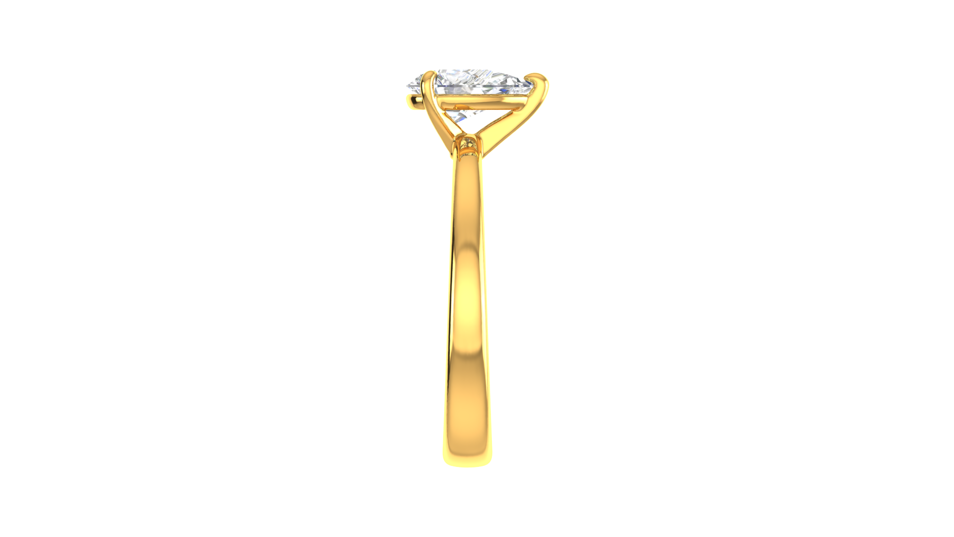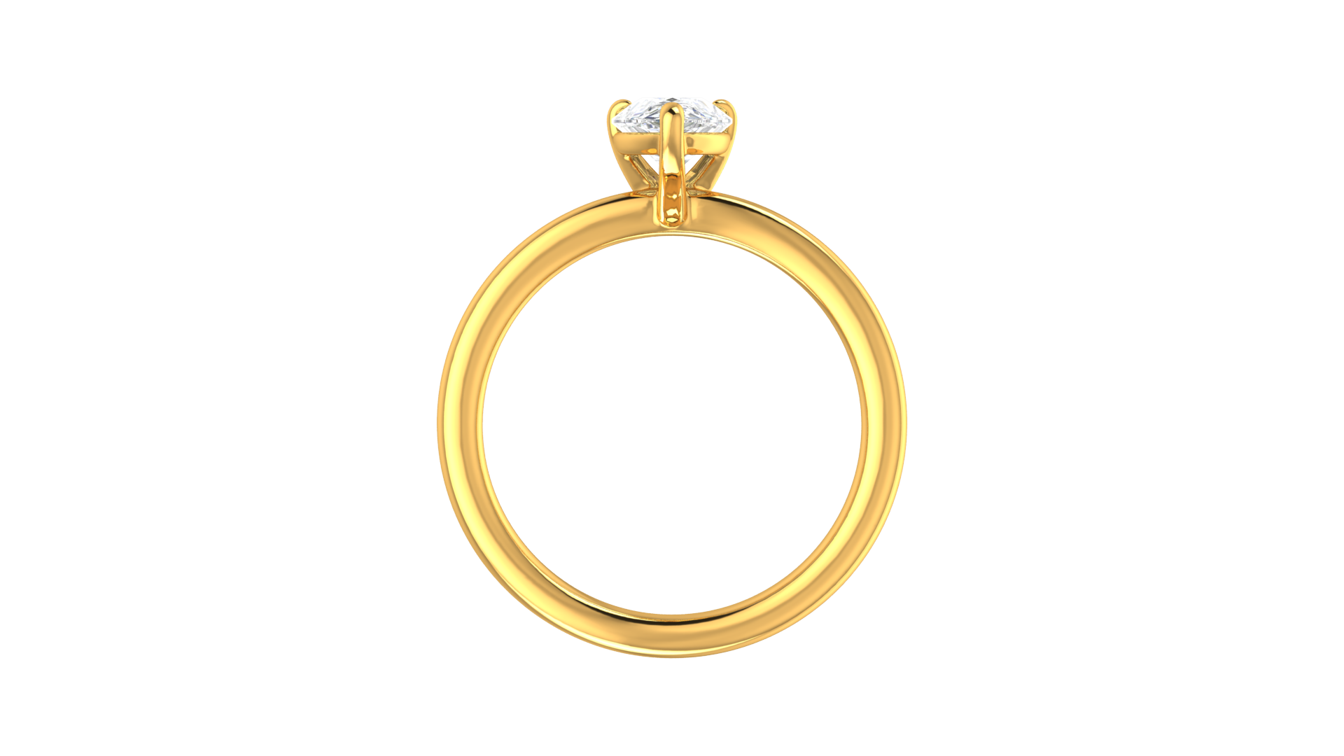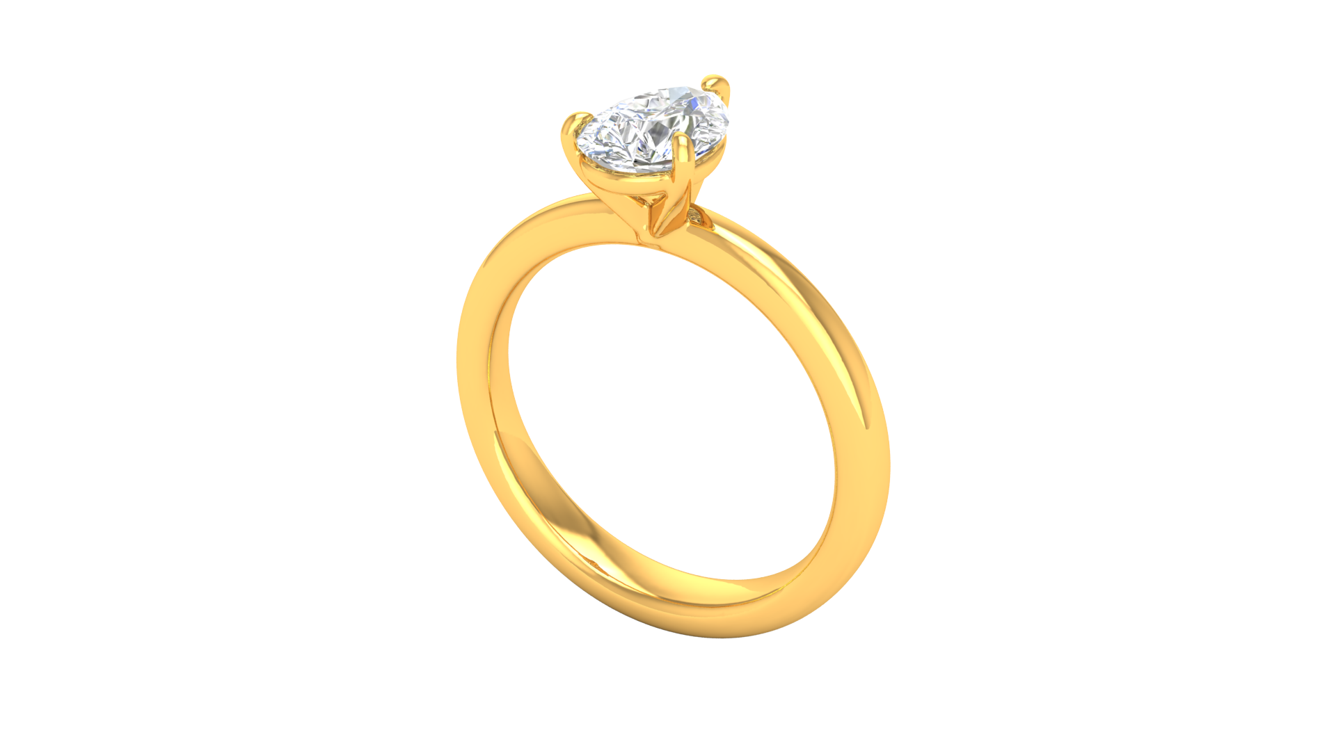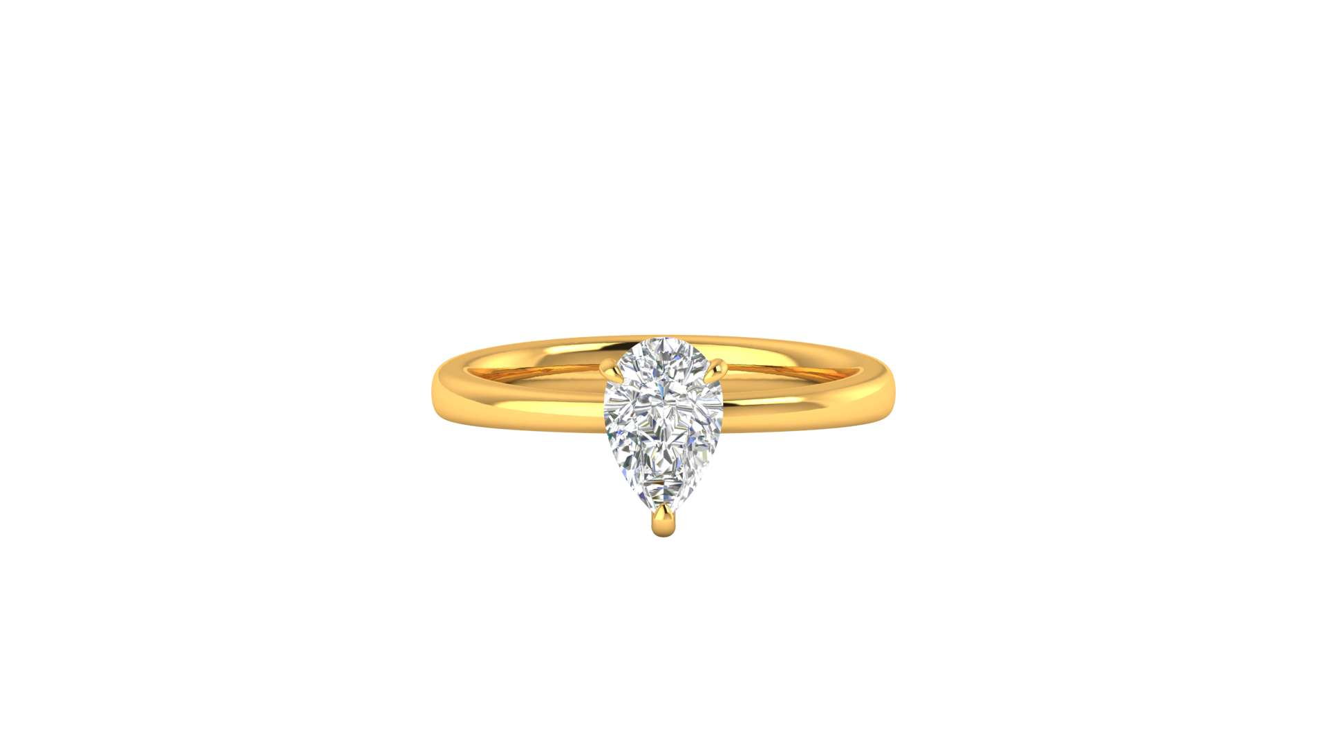 This elegant solitaire engagement ring features a stunning 1.00 CTW pear-cut diamond, set in a secure three-prong setting. The graceful pear shape adds a touch of romance, while the polished yellow gold band complements the diamond’s brilliance. A timeless choice for those who love delicate and sophisticated designs.