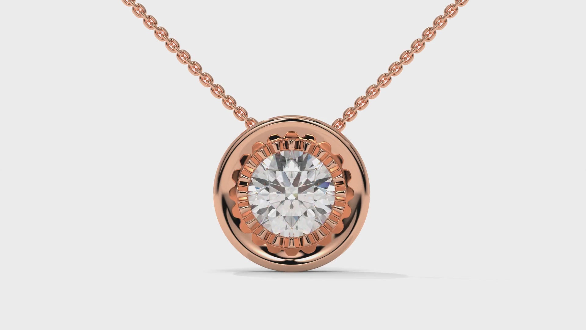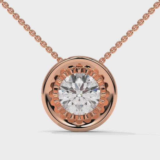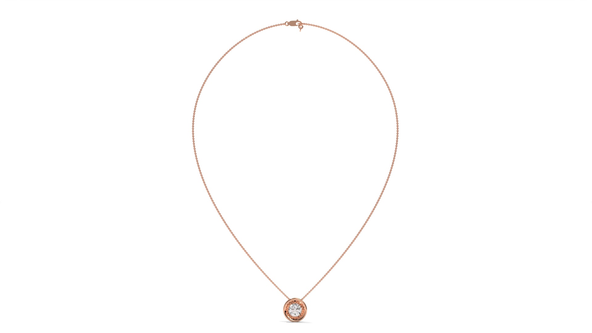 Featuring a total weight of 1.00 carat, this modern solitaire pendant in 14K Rose gold showcases a brilliant round-cut diamond in a sleek bezel setting. The clean, contemporary design pairs timeless elegance with a secure finish, making it perfect for daily wear or as a versatile gift for any special occasion.