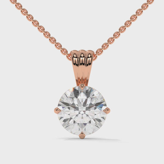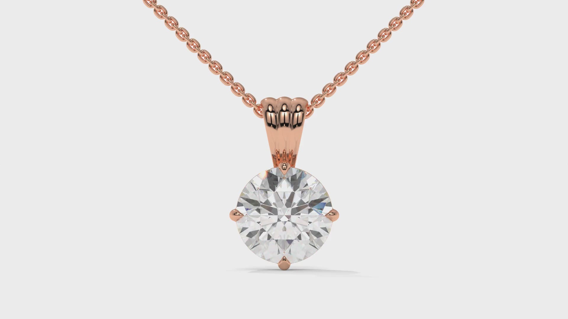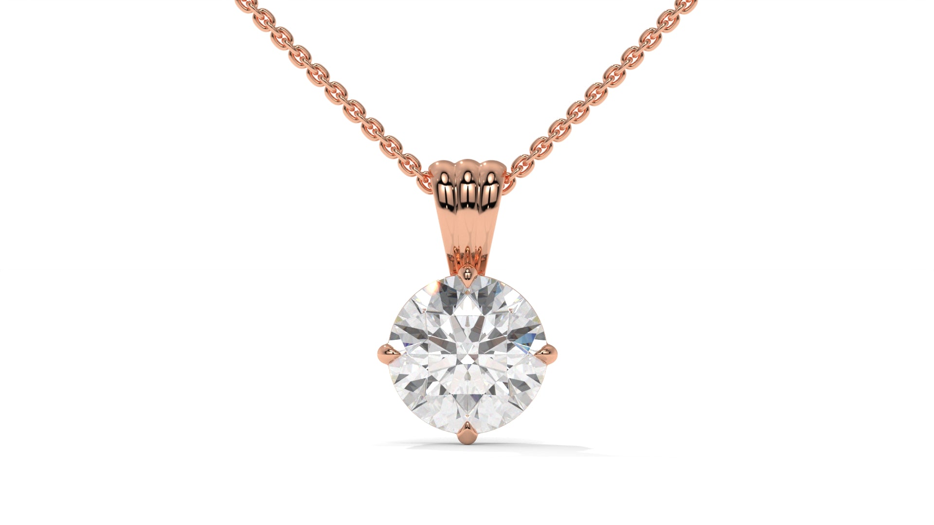 1.00 CTW Round Diamond Four-Prong Solitaire Pendant in 14K Rose Gold – Secure Claw-Prong Setting