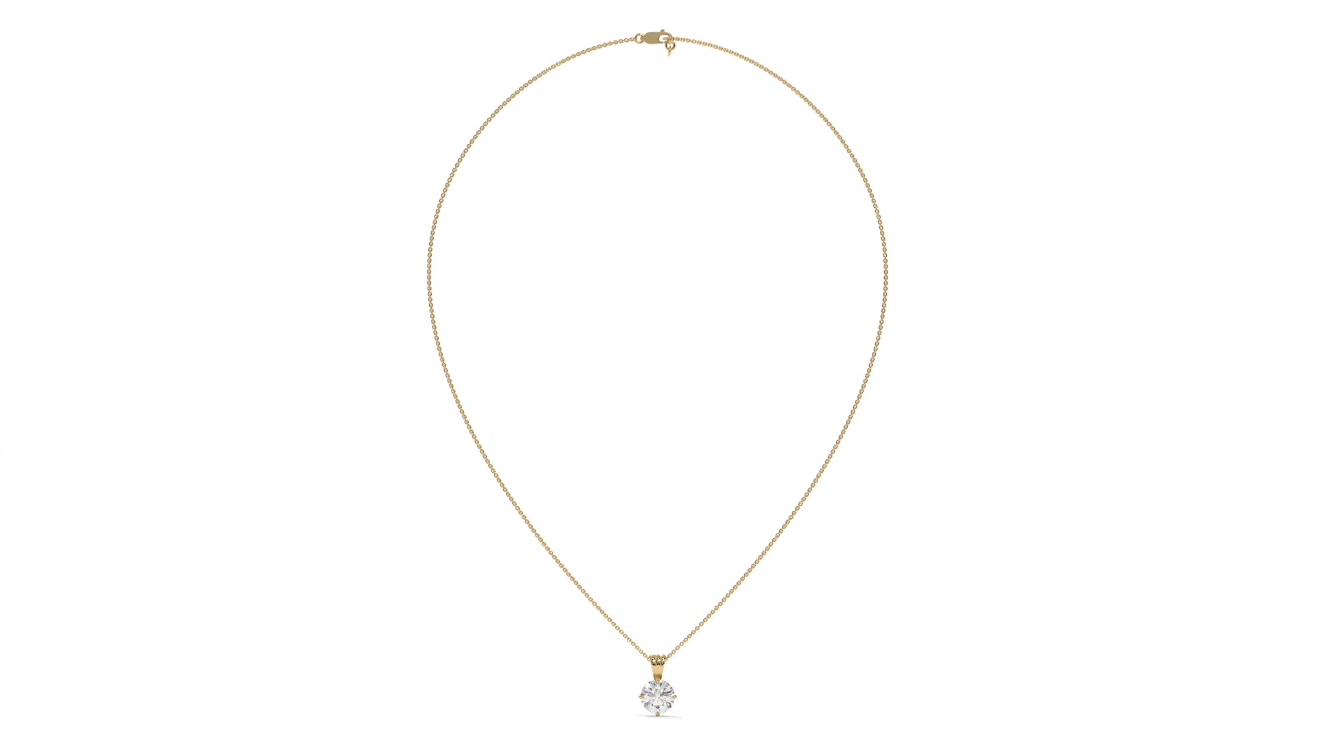 This 1.00 carat total weight round diamond solitaire pendant is a timeless classic. Expertly crafted in 14K yellow gold, the four-prong claw setting enhances brilliance while keeping the diamond securely in place. A perfect choice for everyday elegance or meaningful gifting.