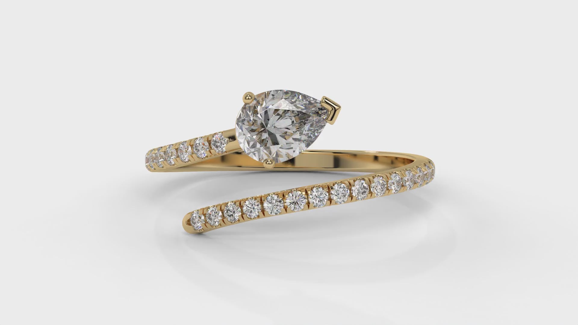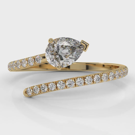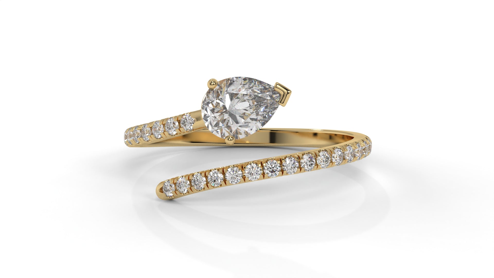 1.03 CTW Pear Diamond Wrap Ring in 14K Yellow Gold with Pavé Band