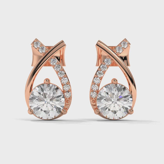 Featuring a total weight of 1.08 carats, these 14K rose gold drop earrings highlight brilliant round center diamonds accented with pavé-set side stones. The sleek, modern crossover design enhances the sparkle, making these earrings a perfect combination of timeless elegance and contemporary style.