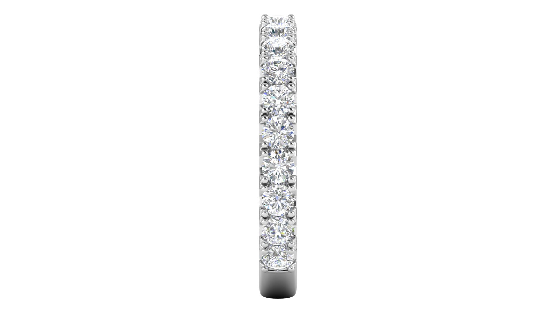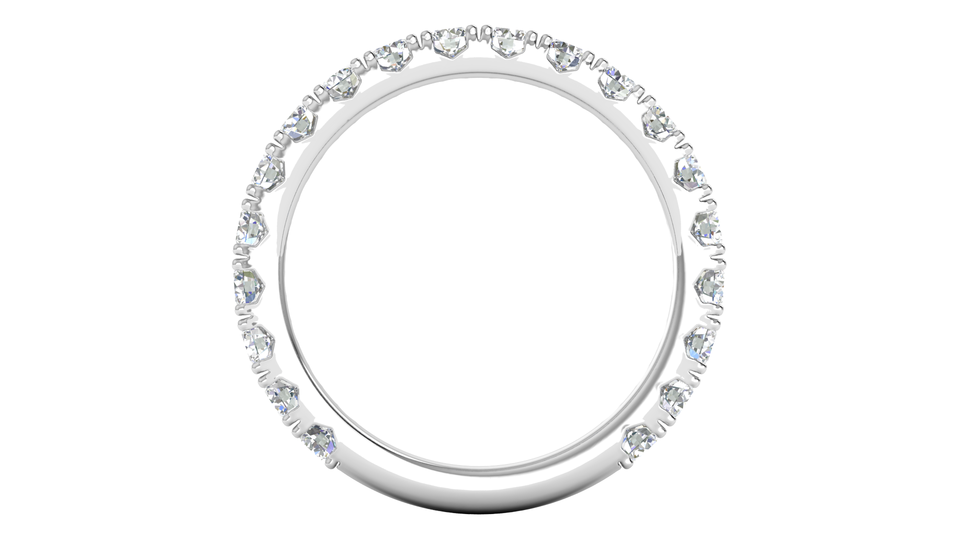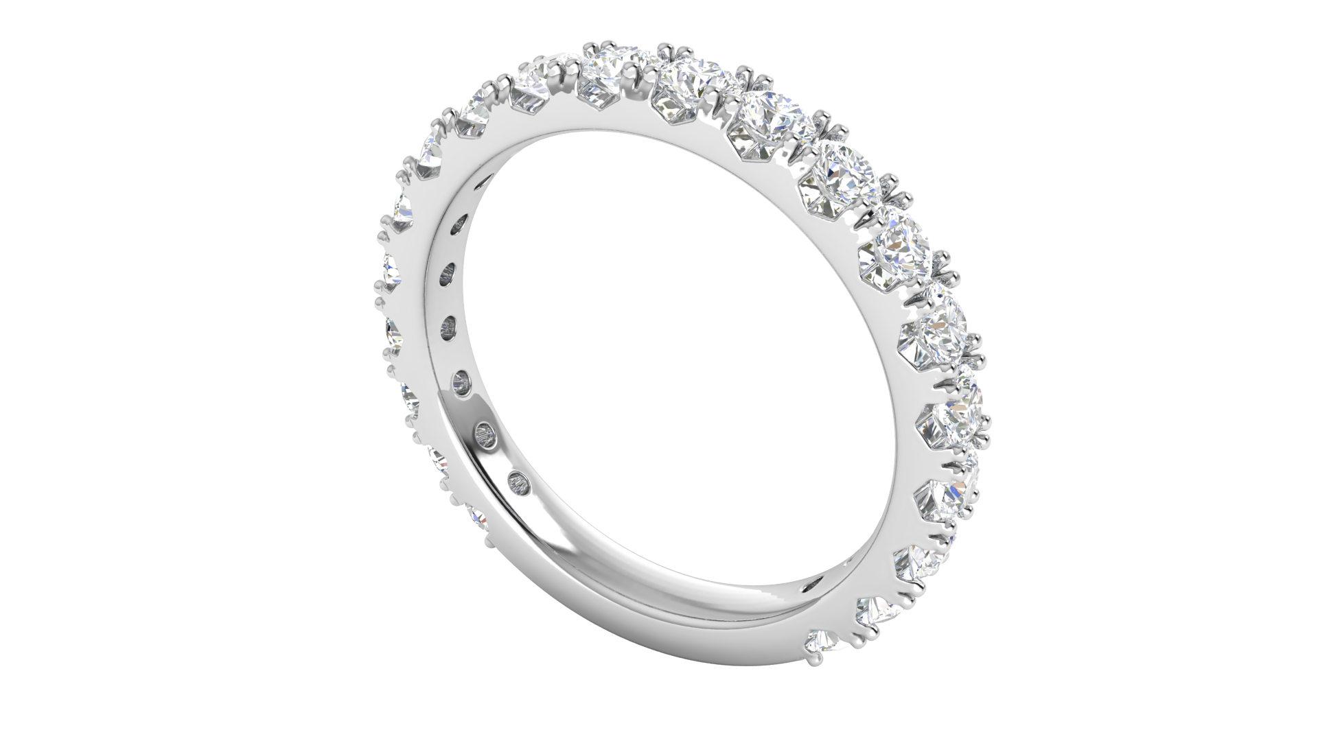 Grace your hand with this exquisite 4 prong wedding band, featuring a row of brilliant round-cut diamonds set halfway around the band. Crafted with precision and elegance in white gold, this ring offers a perfect balance of sophistication and comfort. The prong setting enhances the sparkle of each diamond, making it an ideal choice for anniversaries, weddings, or special milestones. A timeless piece that symbolises love and commitment with understated elegance.