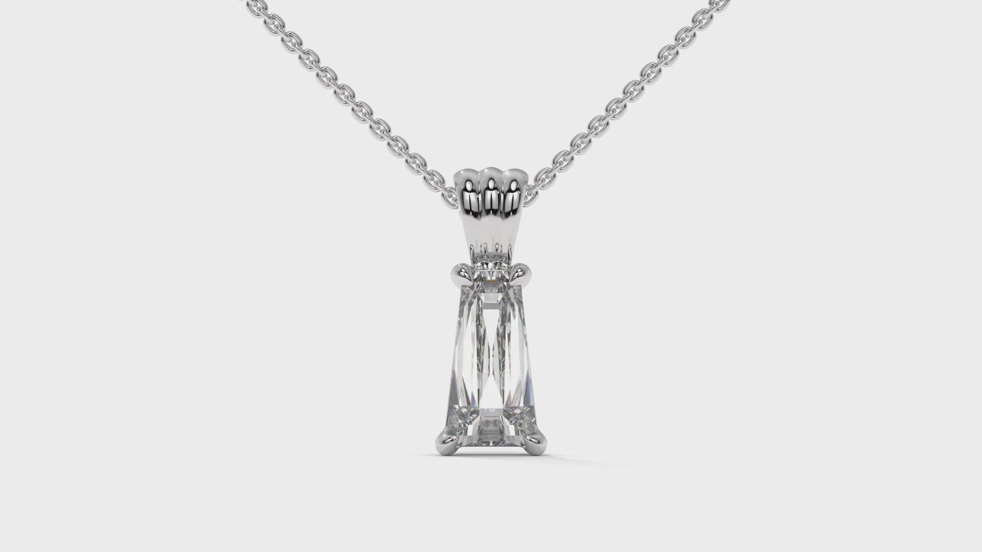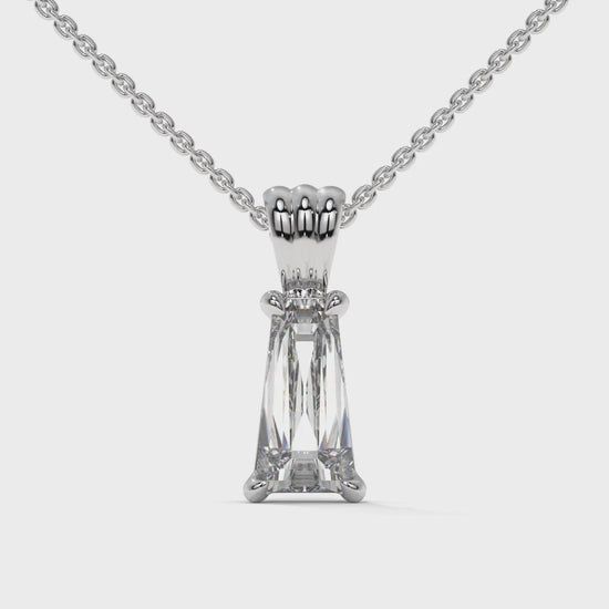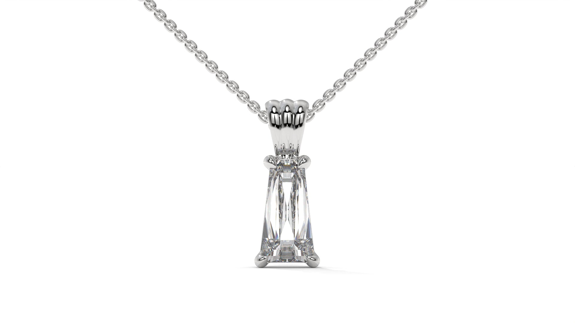 1.50 CTW Tapered Baguette Diamond Solitaire Pendant in 14K White Gold – Secure Claw-Prong Setting
