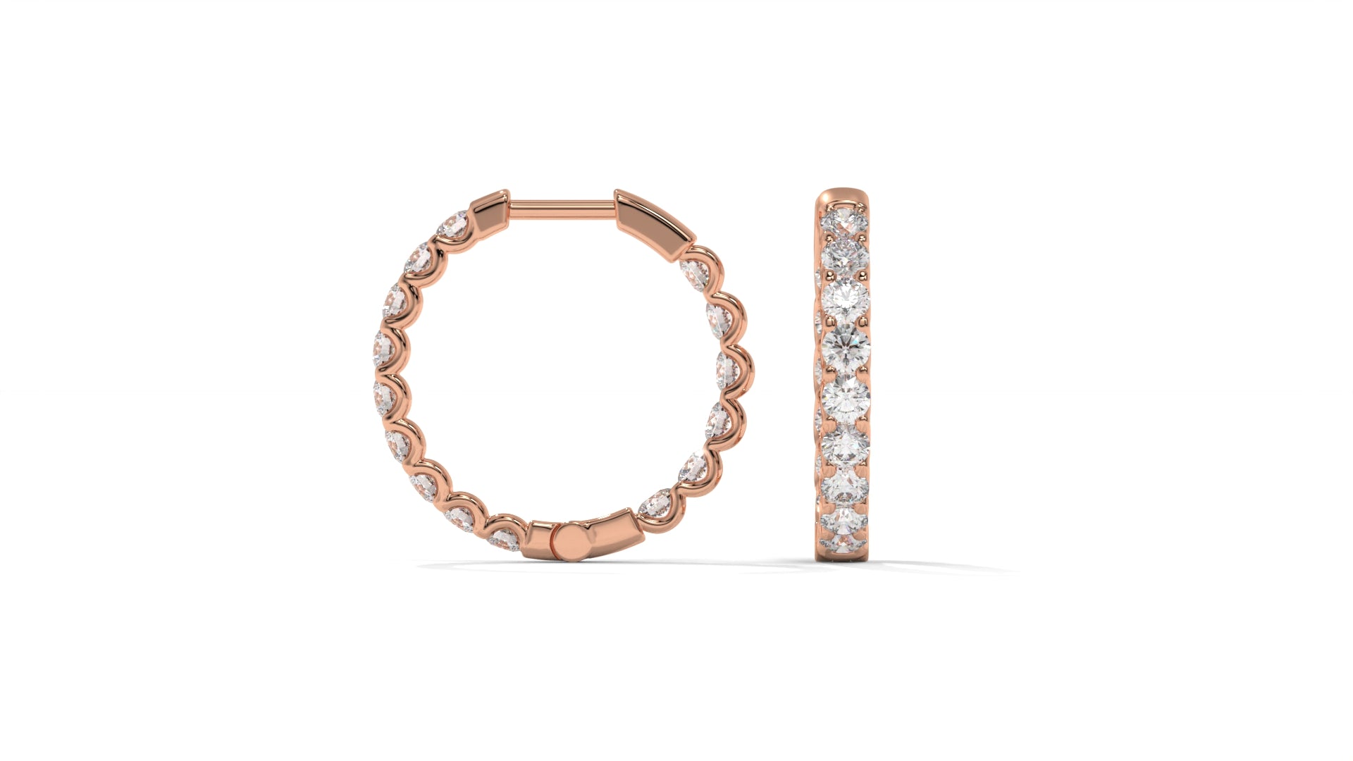 1.56 CTW Round Diamond Hoop Earrings in 14K Rose Gold