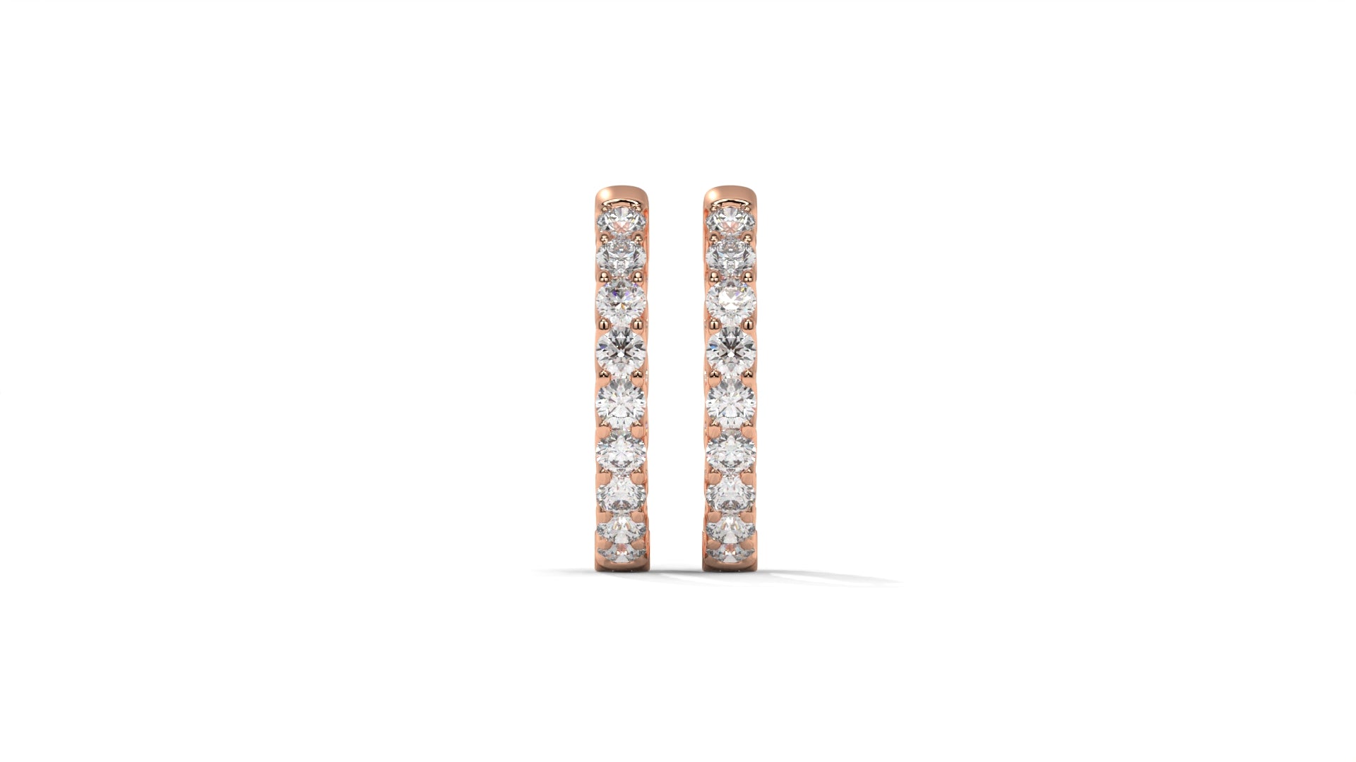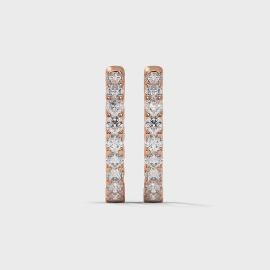 Featuring a total weight of 1.56 carats, these 14K rose gold hoop earrings are adorned with a row of brilliant round-cut diamonds in a classic shared-prong setting. The sleek, timeless design offers a radiant sparkle, making them perfect for both everyday elegance and formal occasions.