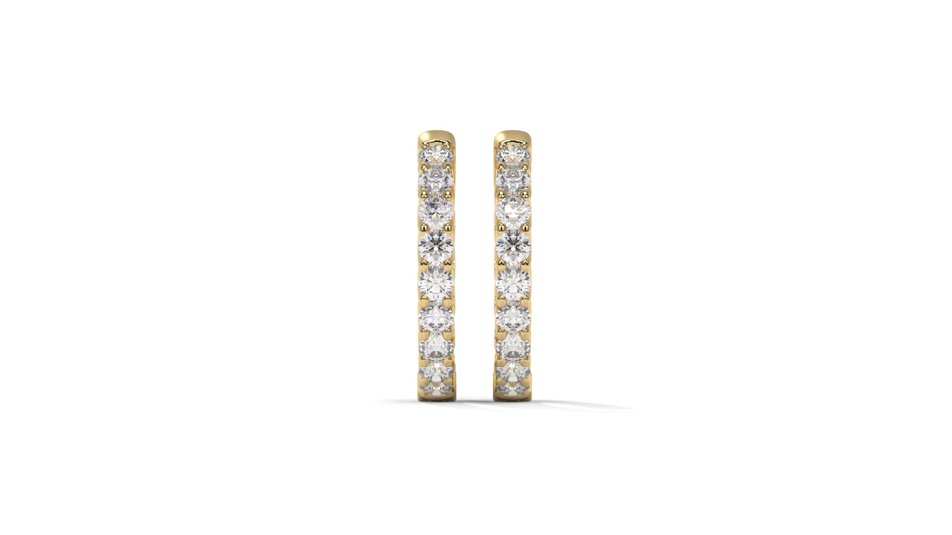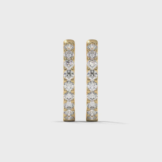 Featuring a total weight of 1.56 carats, these 14K yellow gold hoop earrings are adorned with a row of brilliant round-cut diamonds in a classic shared-prong setting. The sleek, timeless design offers a radiant sparkle, making them perfect for both everyday elegance and formal occasions.