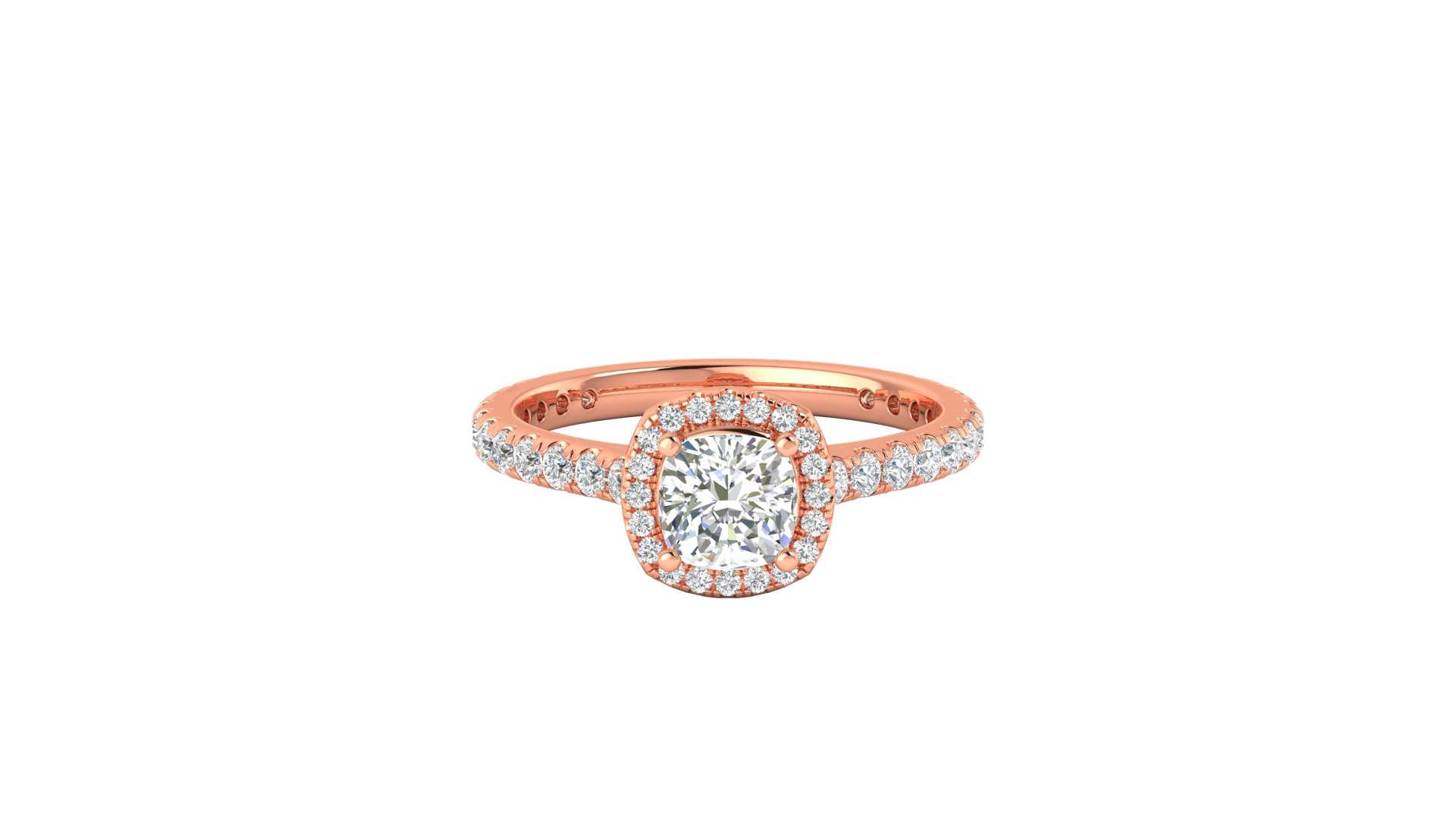 Discover the timeless elegance of our 1-carat cushion-cut halo engagement ring, featuring a stunning center diamond surrounded by a sparkling pavé-set diamond band. Designed to maximize brilliance, this ring is the perfect symbol of love and commitment.