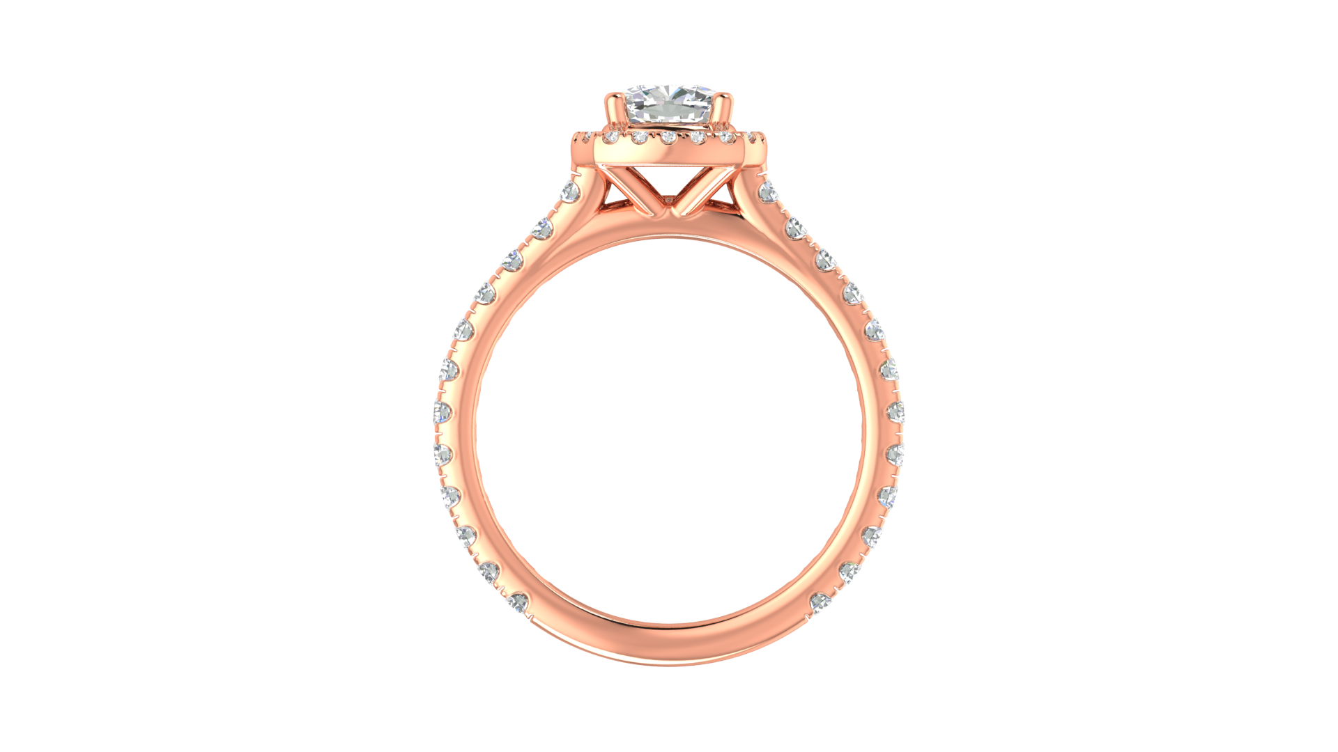 1 Carat Cushion-Cut Halo Engagement Ring With Pavé Diamond Band In 14K Rose Gold