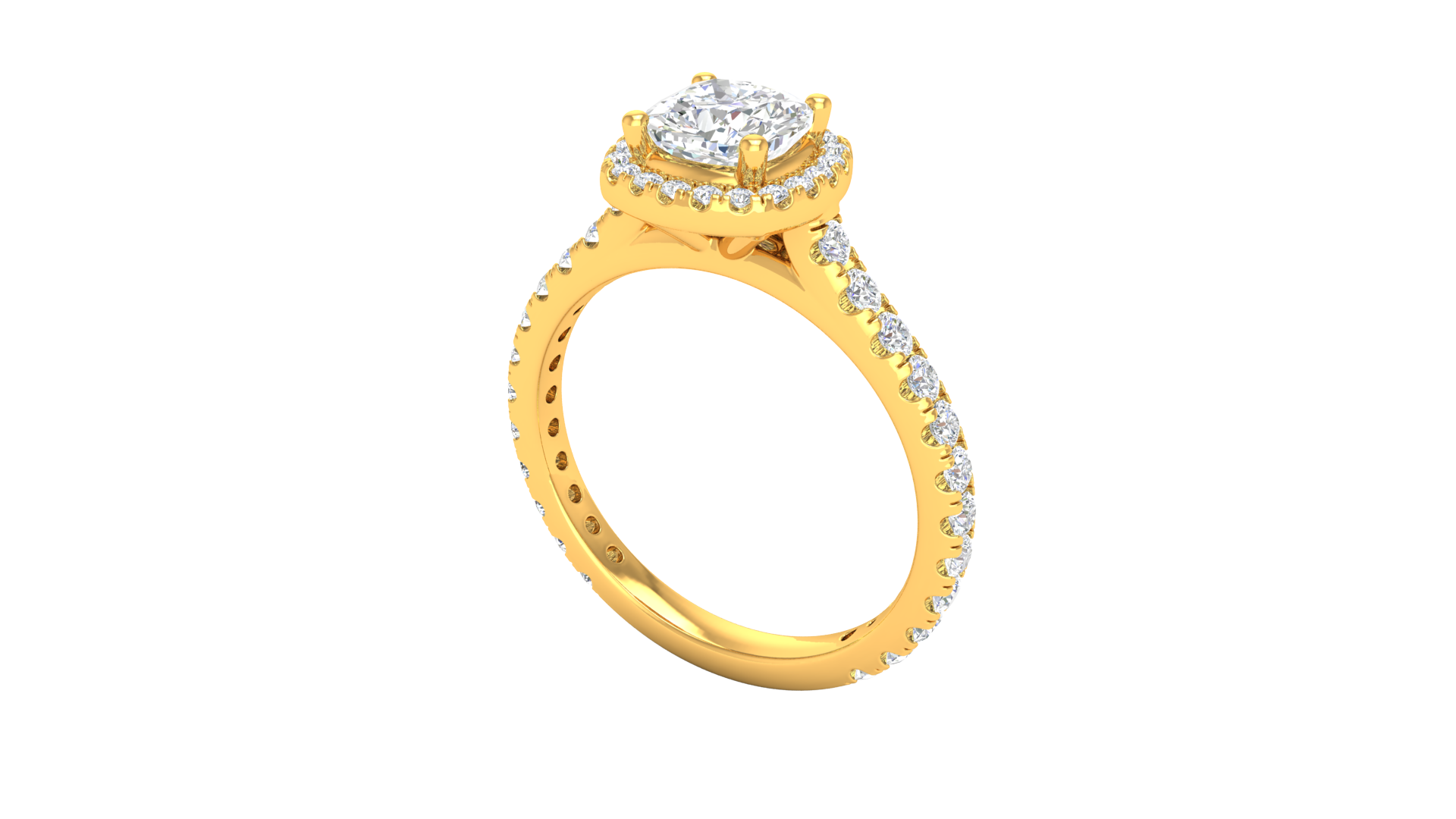 Discover the timeless elegance of our 1-carat cushion-cut halo engagement ring, featuring a stunning center diamond surrounded by a sparkling pavé-set diamond band. Designed to maximize brilliance, this ring is the perfect symbol of love and commitment.