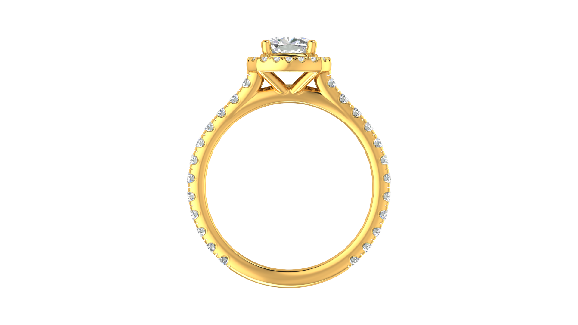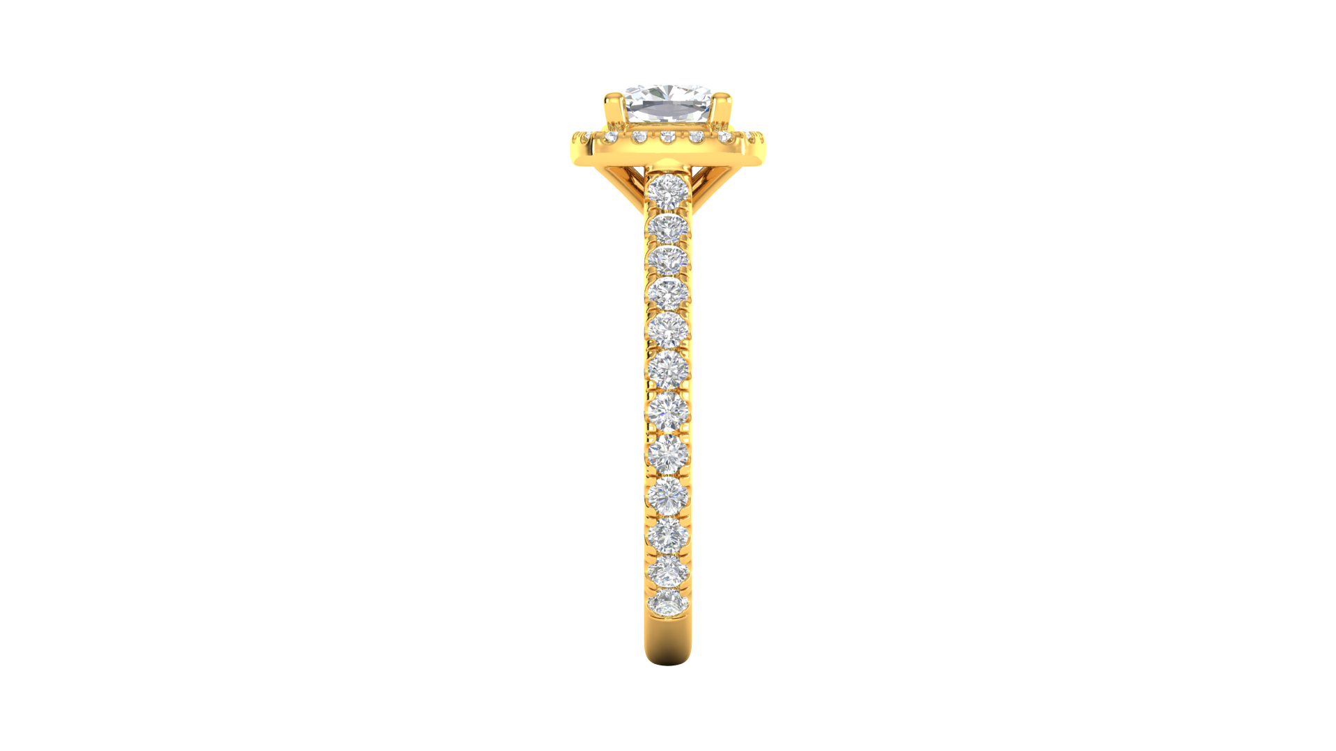 1 Carat Cushion-Cut Halo Engagement Ring With Pavé Diamond Band In 14K Yellow Gold