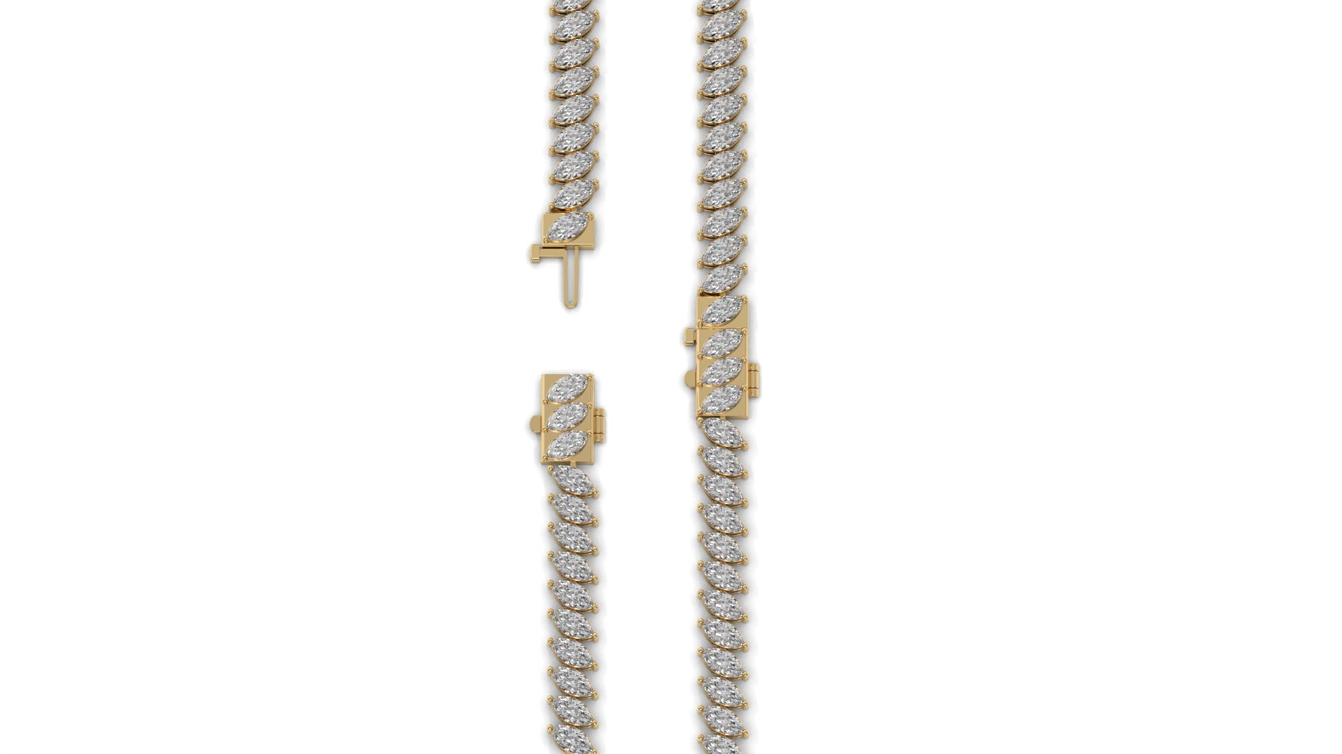 This 11.50 carat total weight diamond bracelet is set with dazzling marquise-cut diamonds in 14K yellow gold. The unique elongated shape of each marquise diamond enhances brilliance and flow, giving the bracelet a refined and sophisticated look.