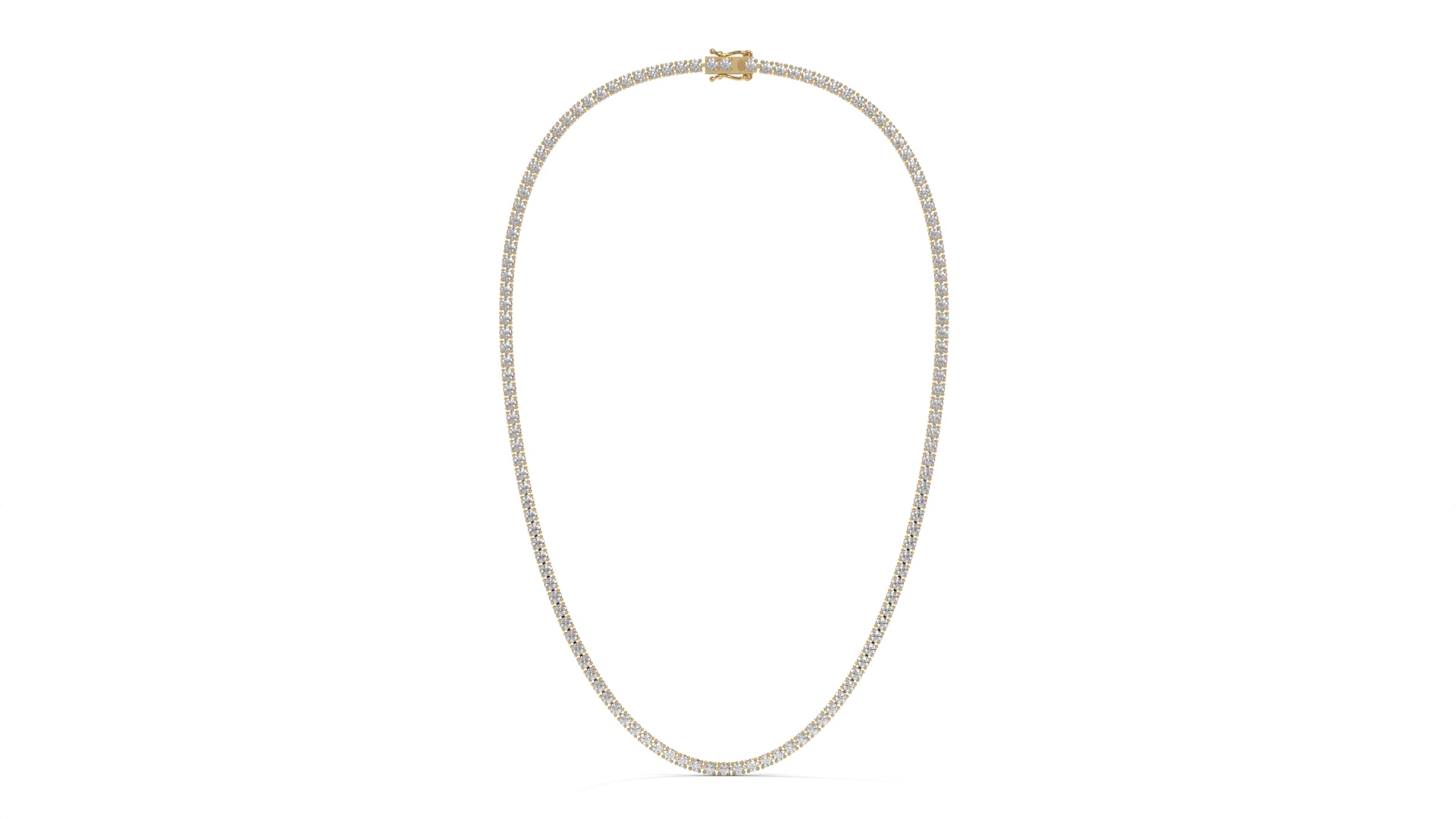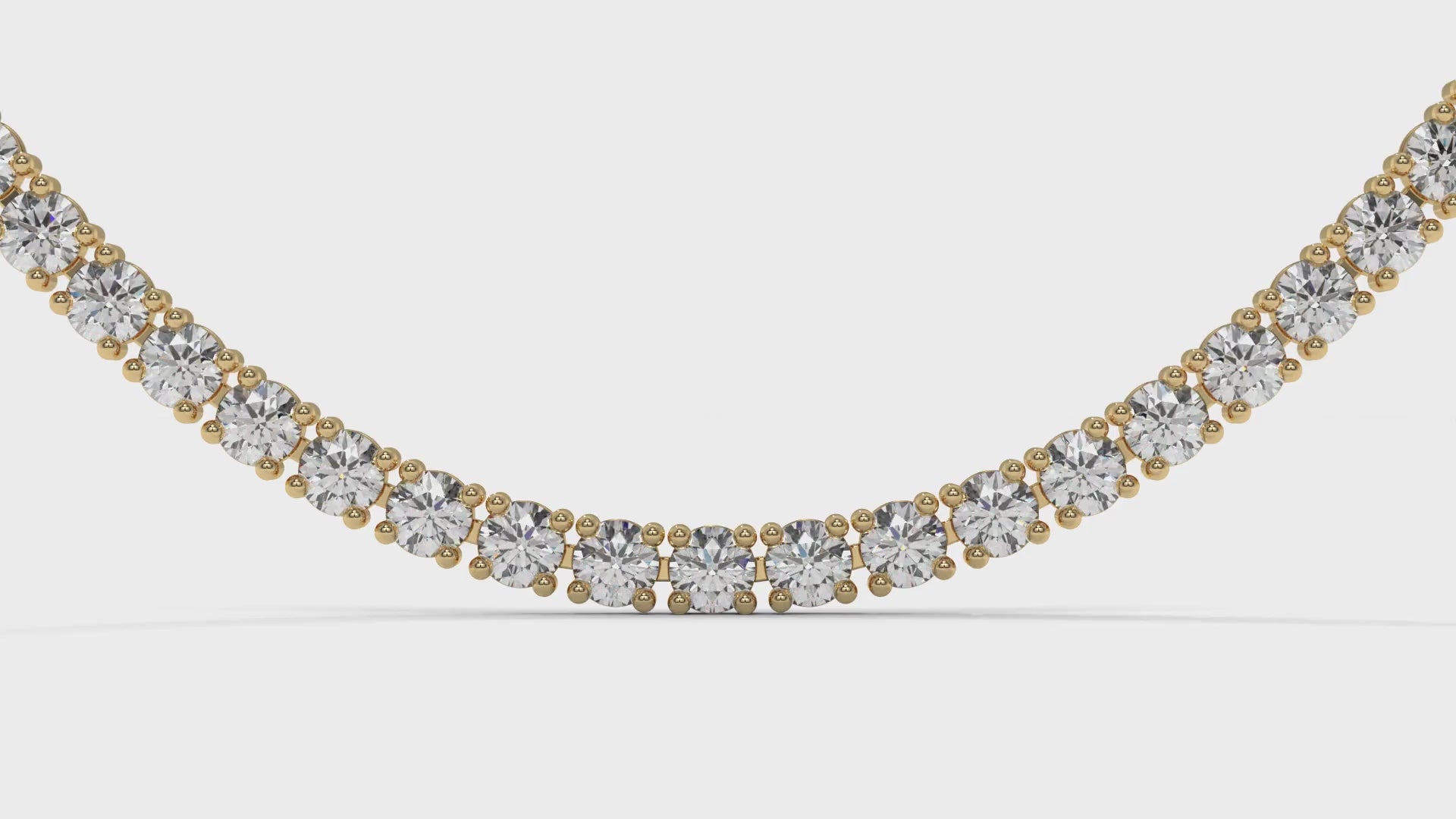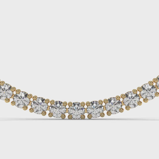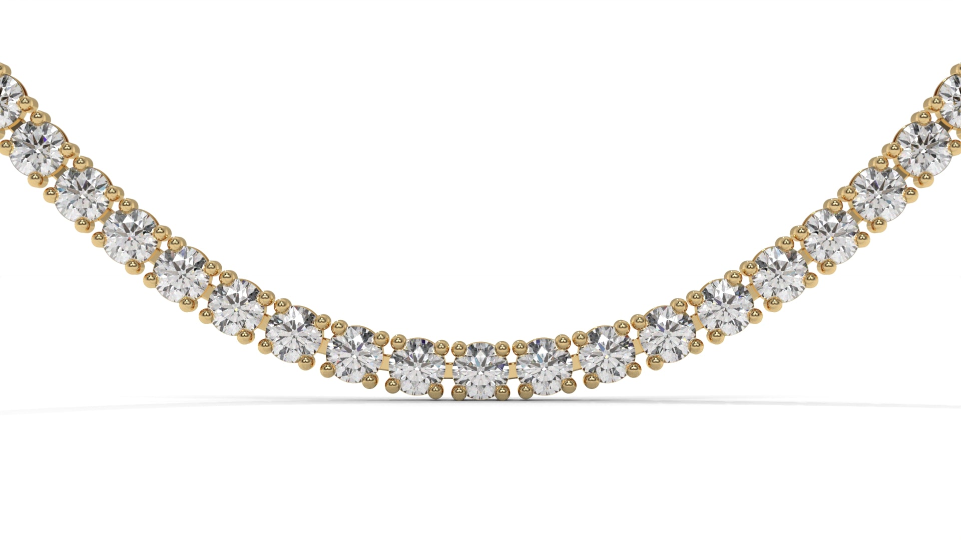 12.50 CTW Diamond Tennis Necklace in 14K Yellow Gold – Classic Round Cut Single Row In 17 Inch