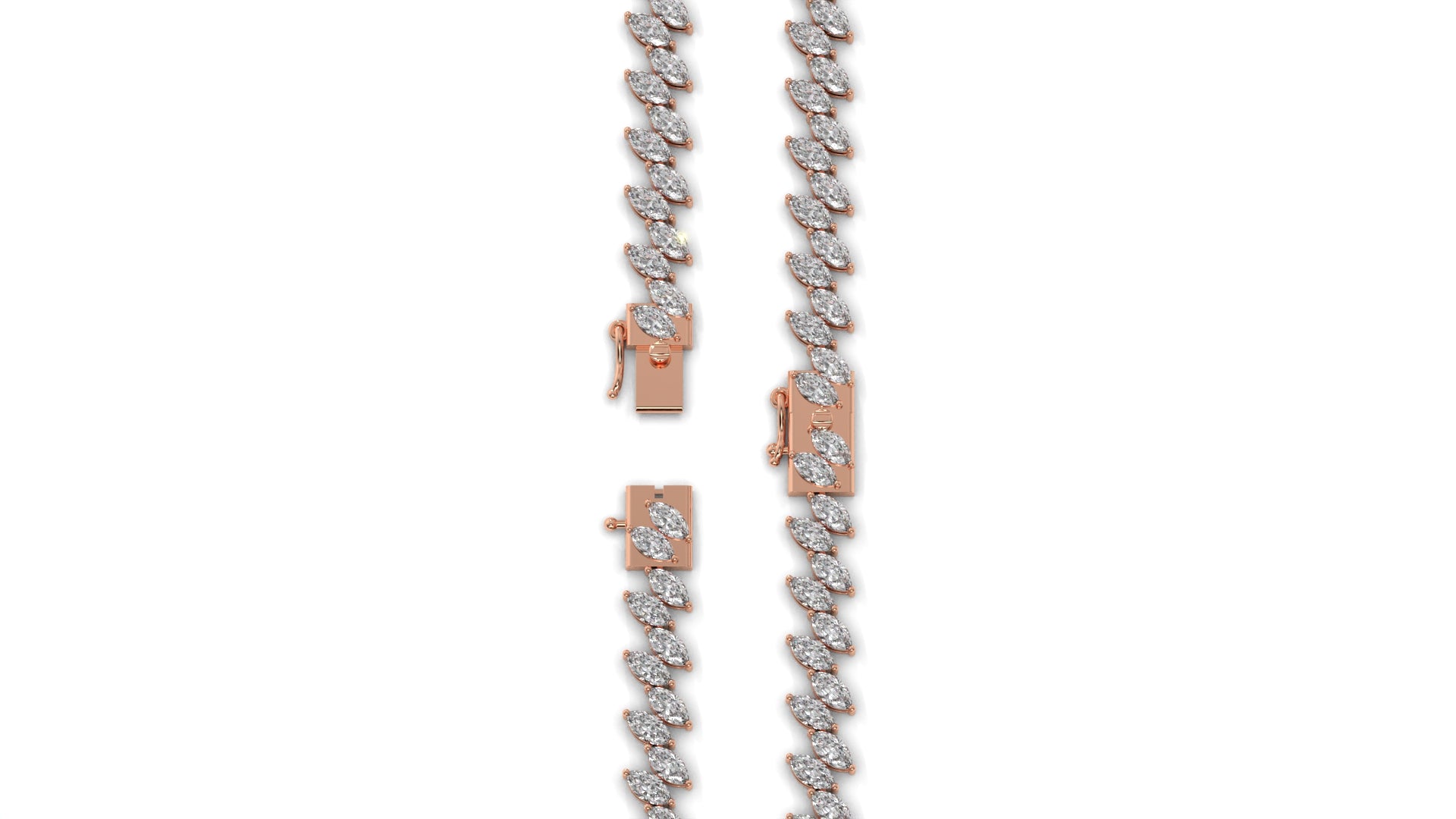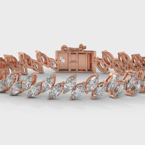 This 12.50 carat total weight diamond bracelet is crafted in 14K rose gold and features a bold double-row of marquise-cut diamonds. The elongated marquise shape enhances brilliance and creates a fluid, elegant look around the wrist. Designed to stand out, this diamond bracelet makes the perfect statement piece for luxury events, milestone celebrations, or as a timeless addition to your fine jewelry collection.