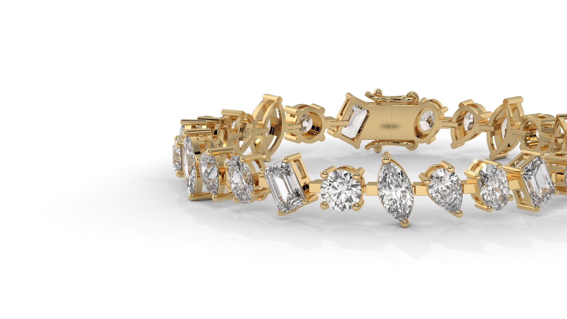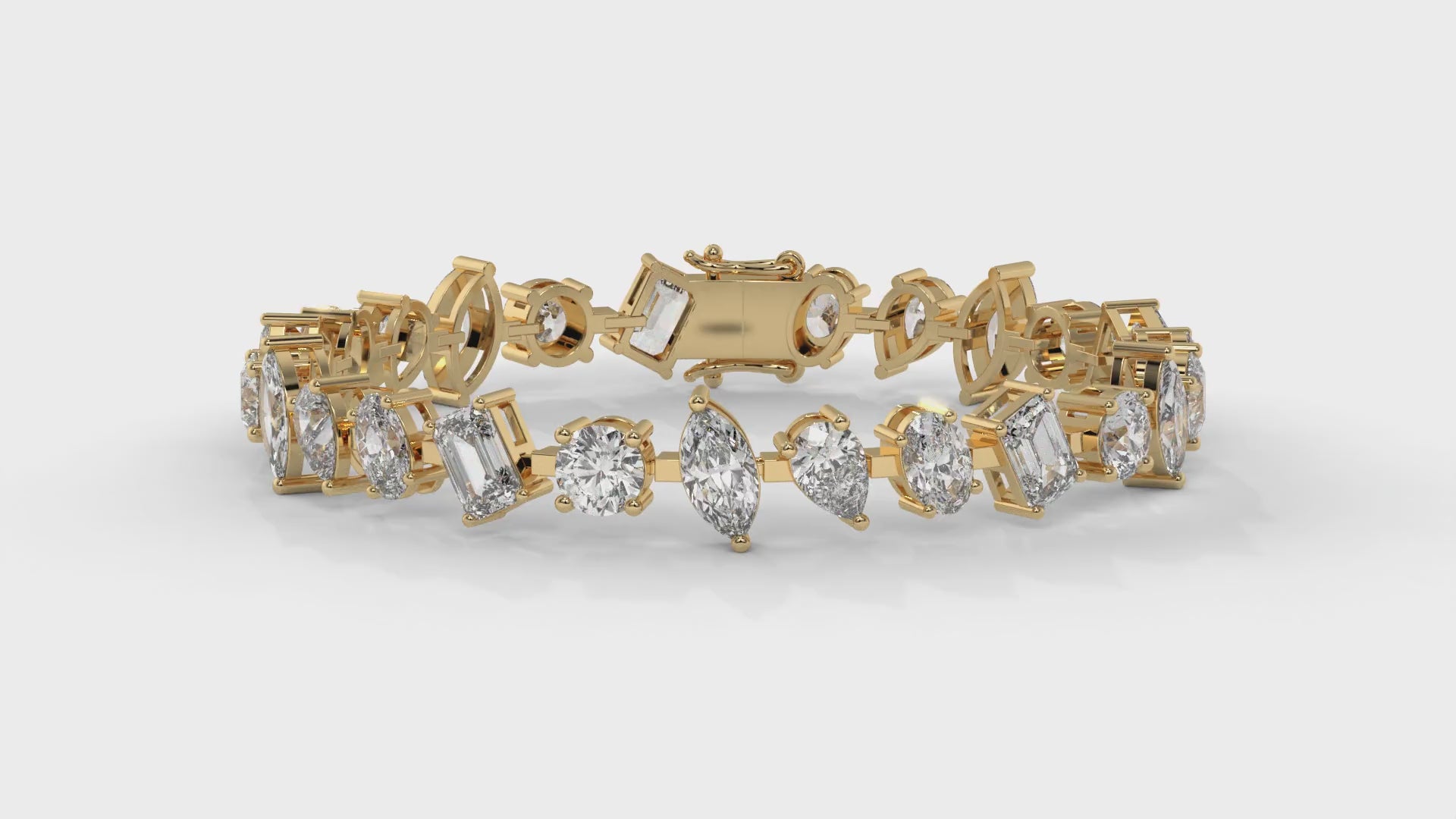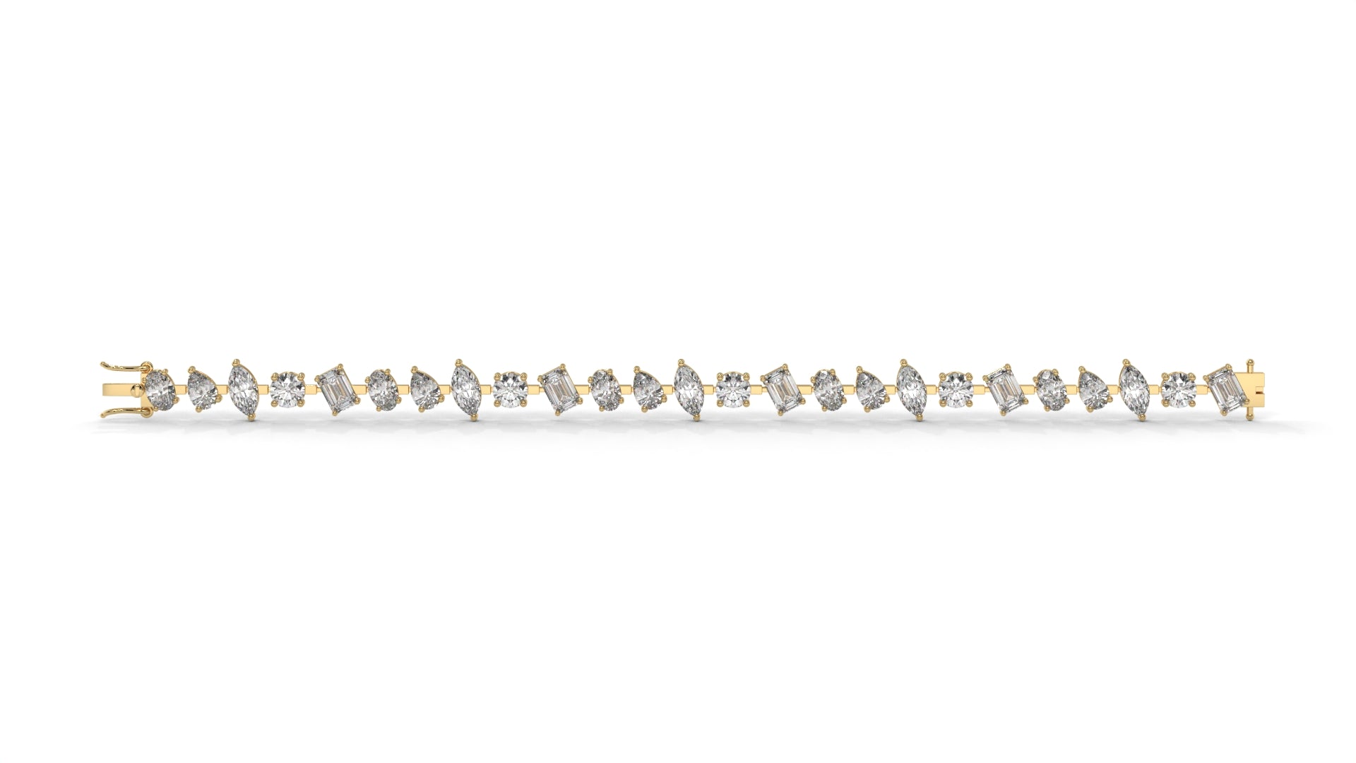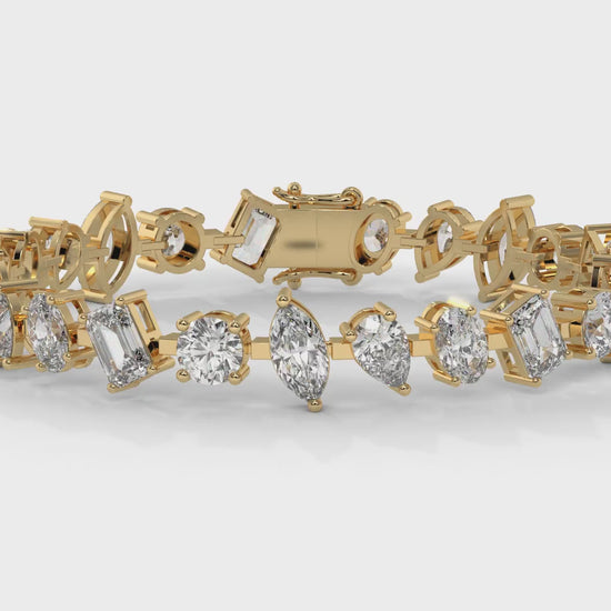 12.50 CTW Mixed Shape Diamond Bracelet in 14K Yellow Gold – Round, Emerald, Oval, Pear & Marquise Cut