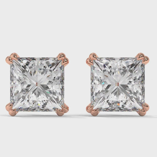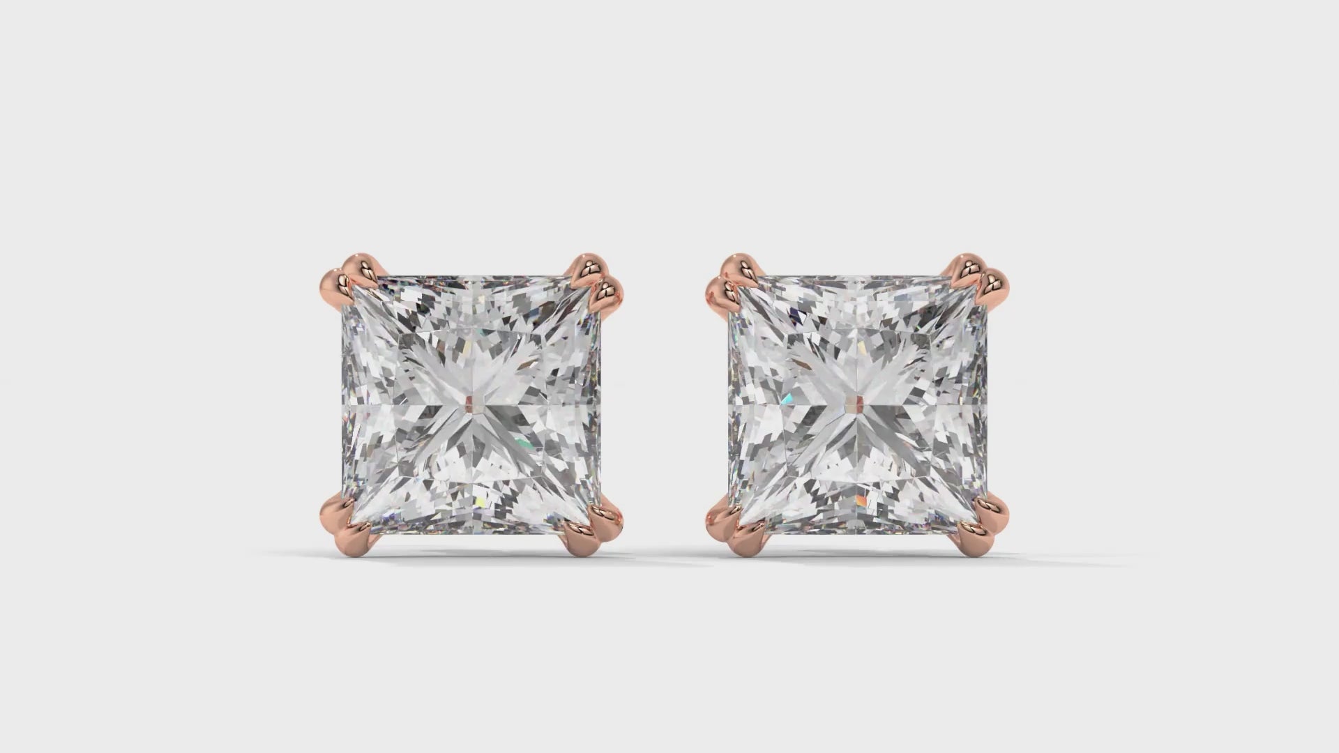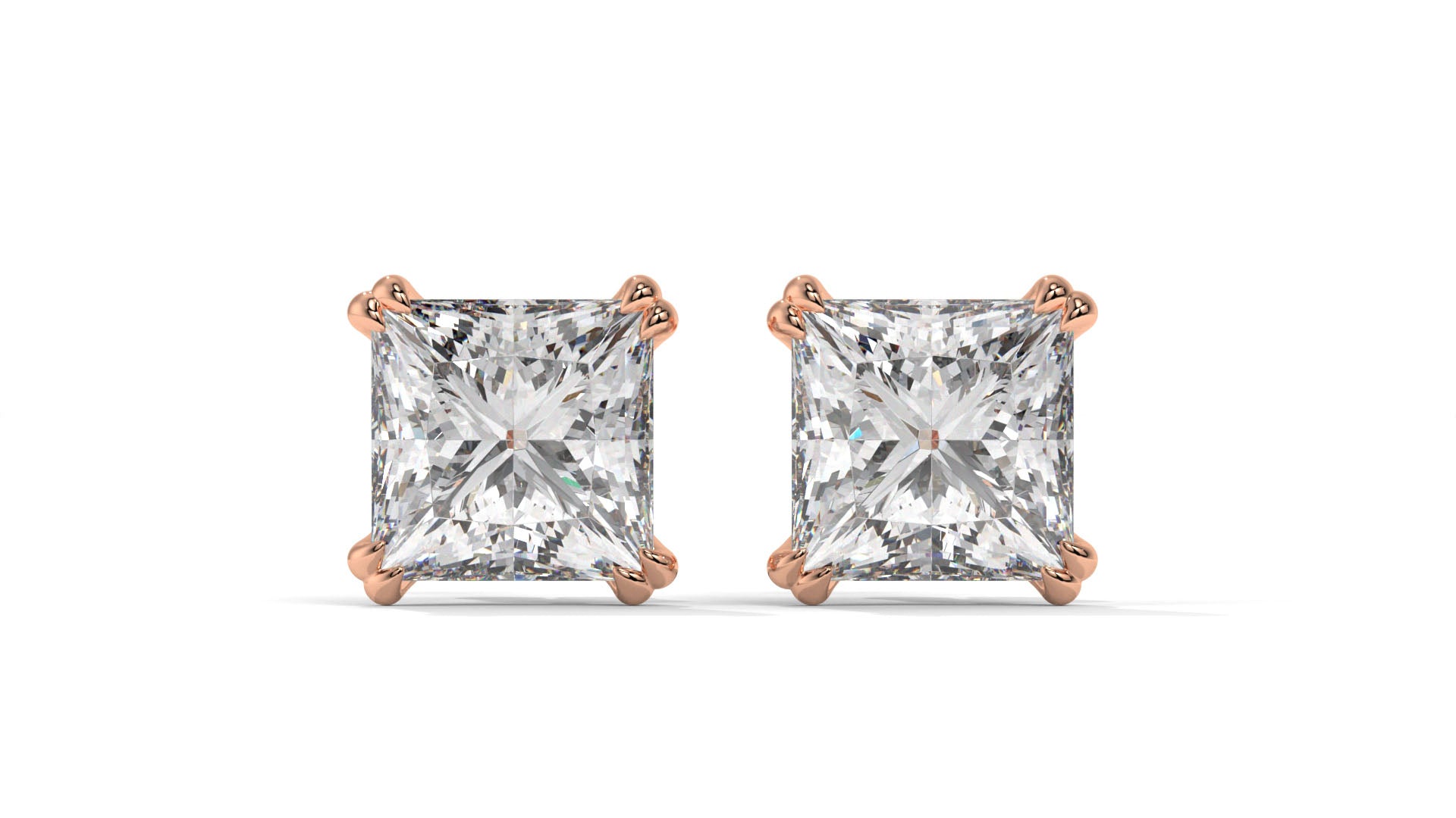 3 CTW Princess-Cut Diamond Stud Earrings In 14K Rose Gold – Four-Prong Setting