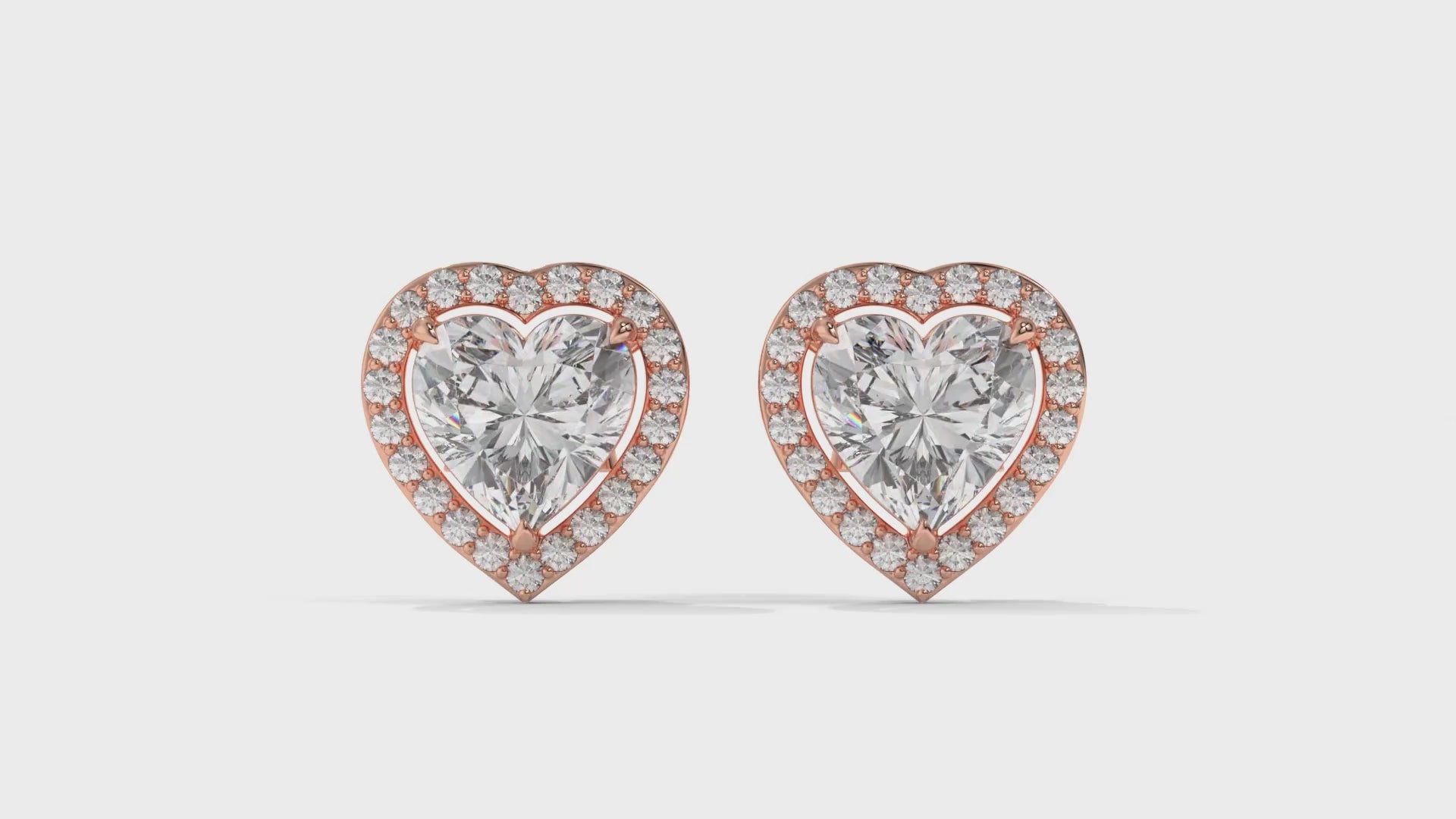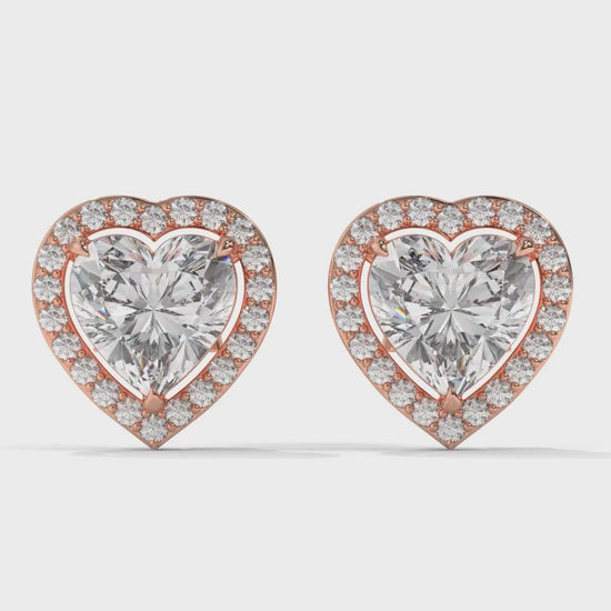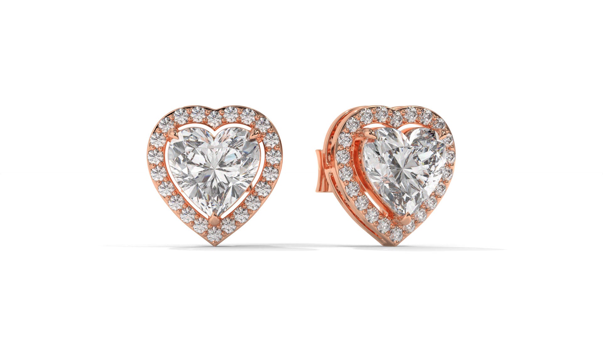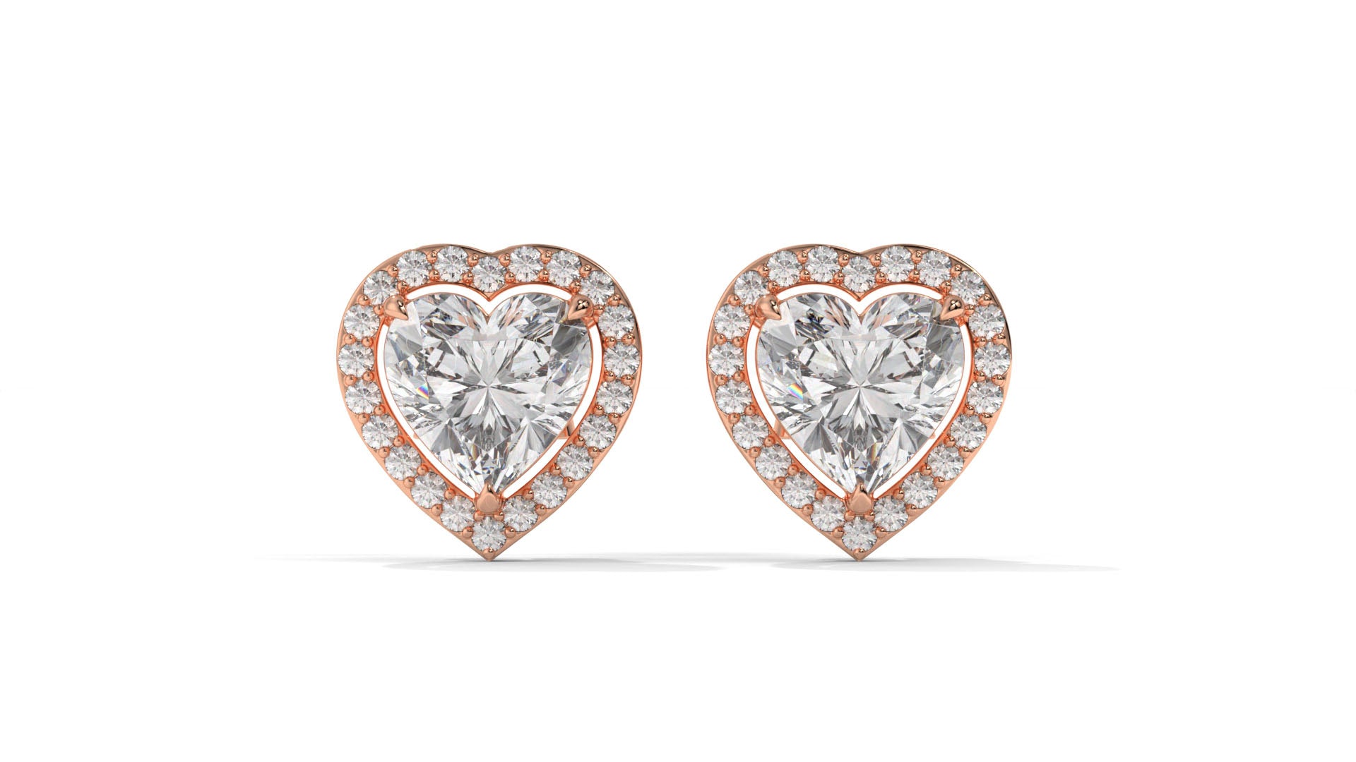 4.44 CTW Heart-Shaped Diamond Halo Stud Earrings In 14K Rose Gold – 0.44 CTW Side Stones