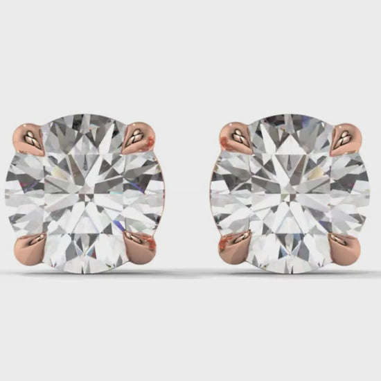 6 CTW Round Diamond Stud Earrings In 14K Rose Gold – Brilliant-Cut Solitaire, Four-Prong Setting