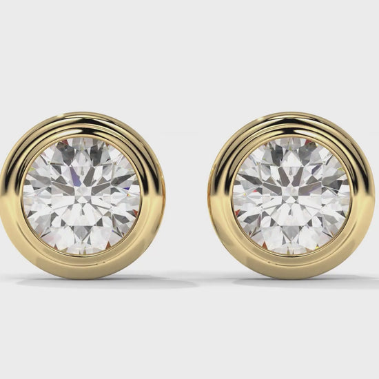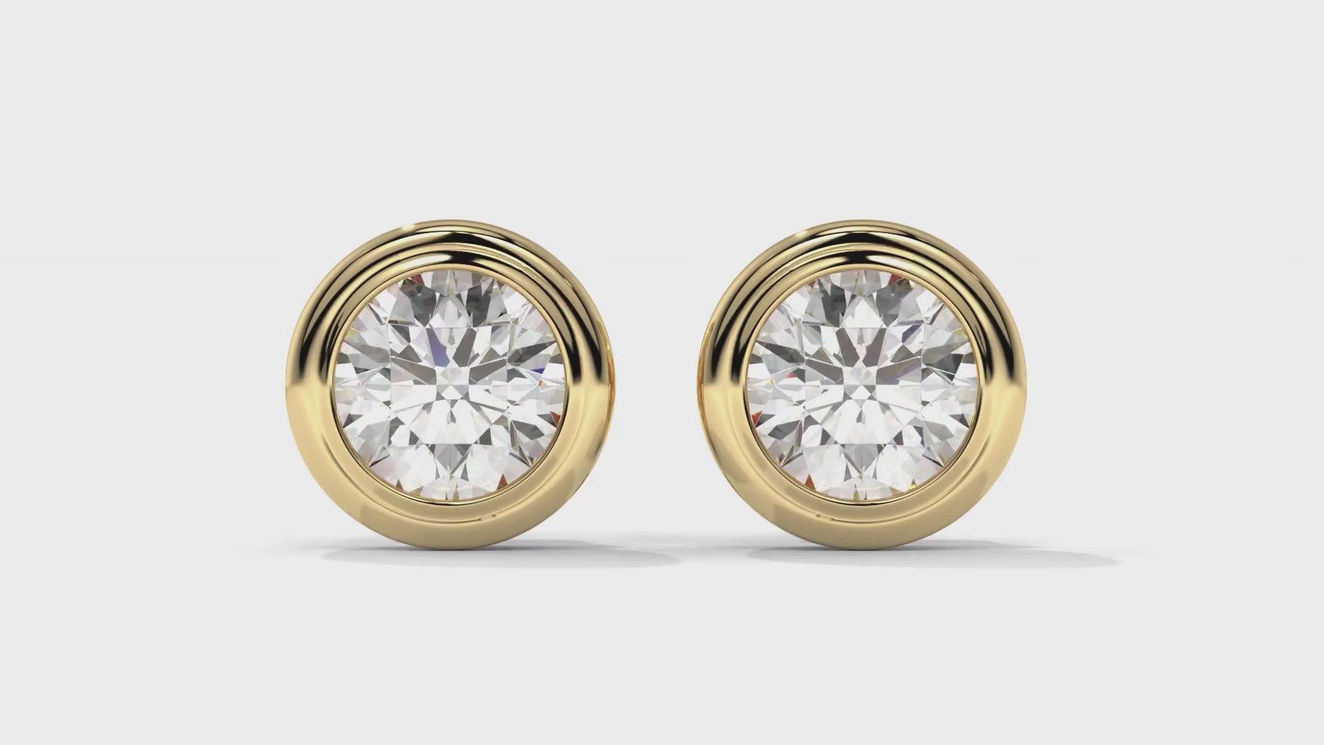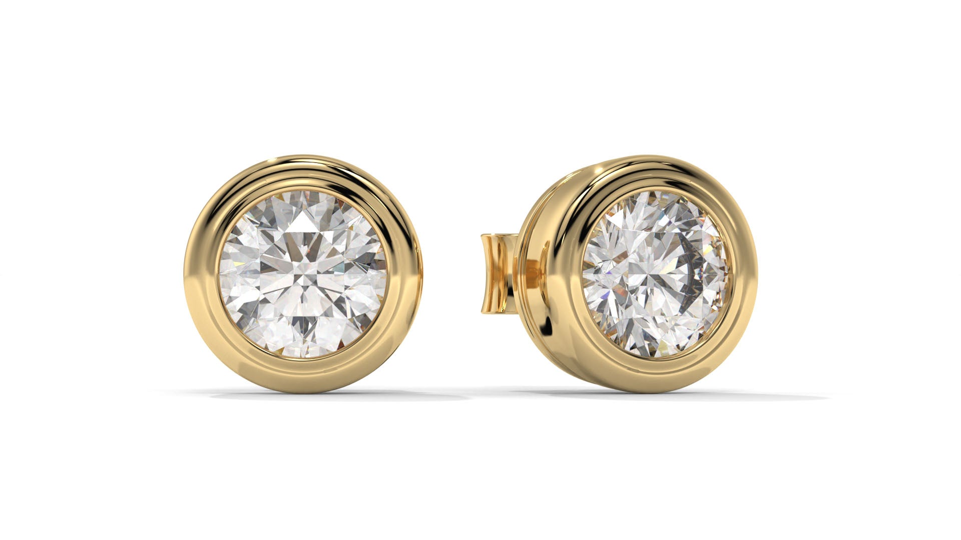 3 CTW Round Diamond Bezel-Set Stud Earrings In 14K Yellow Gold – Brilliant-Cut, Screw Back