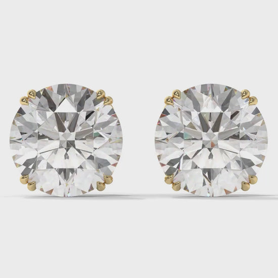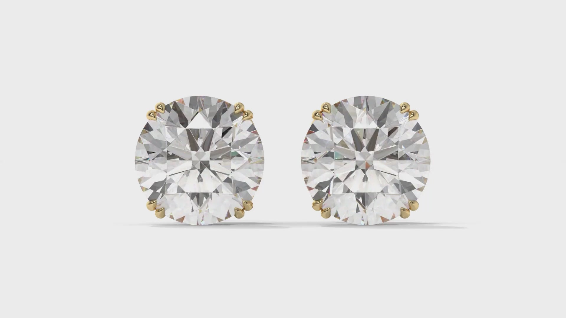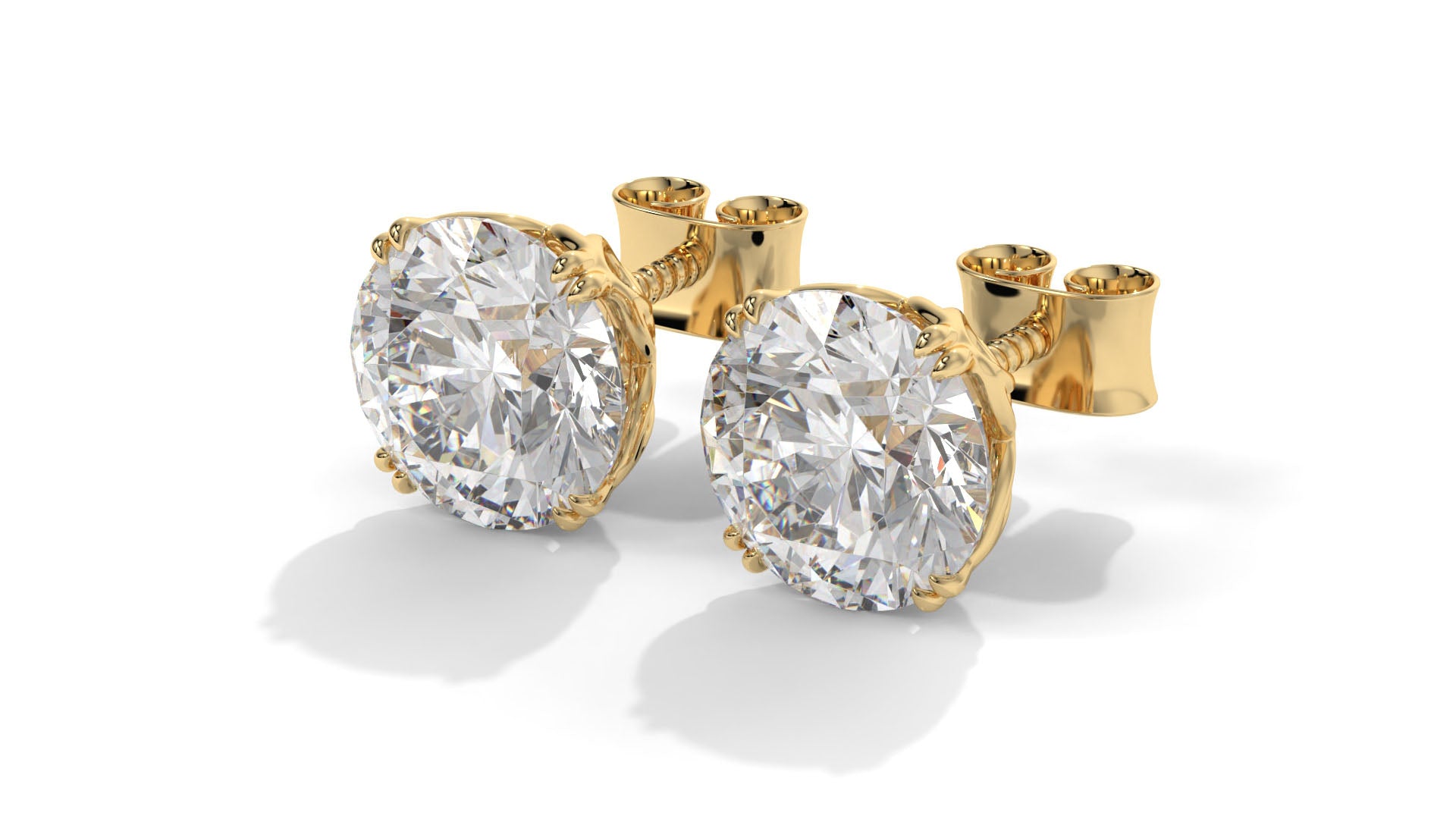3 CTW Round Diamond Stud Earrings In 14K Yellow Gold – Brilliant-Cut, Four-Prong Filigree Basket, Screw Back