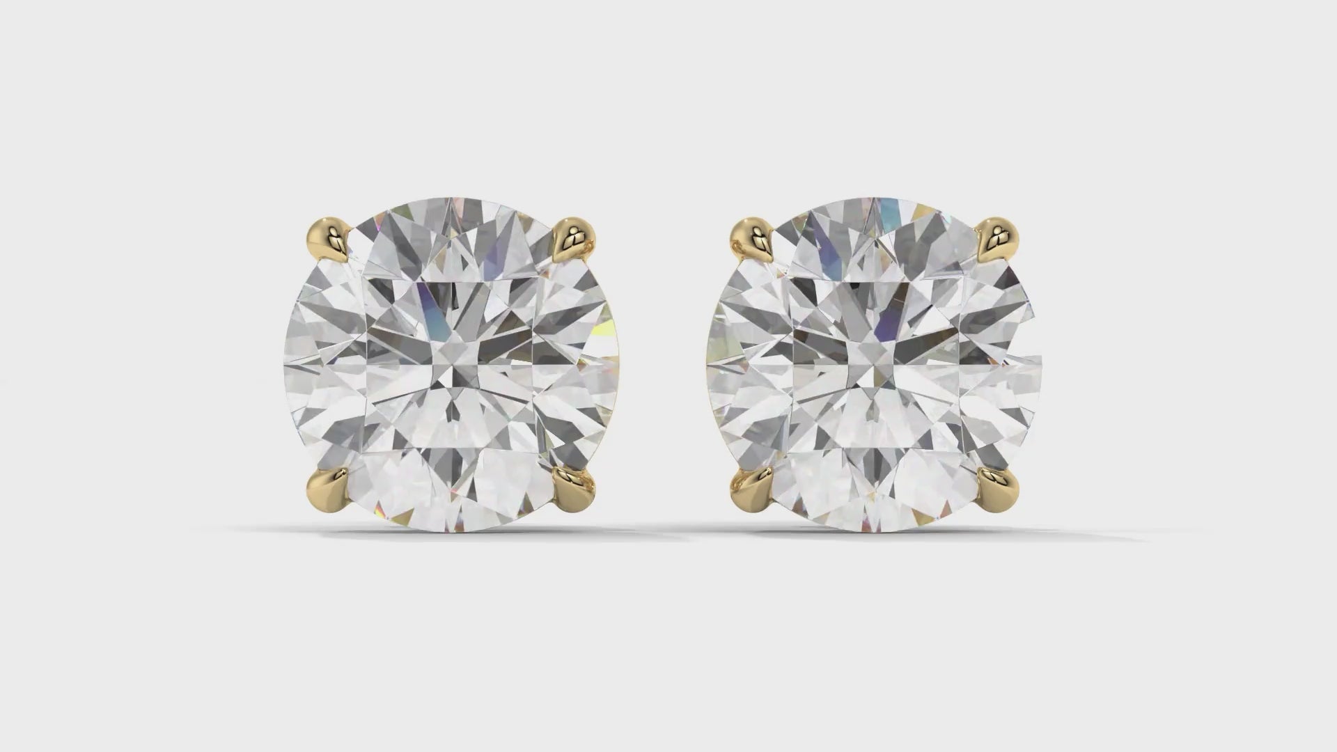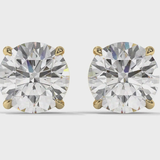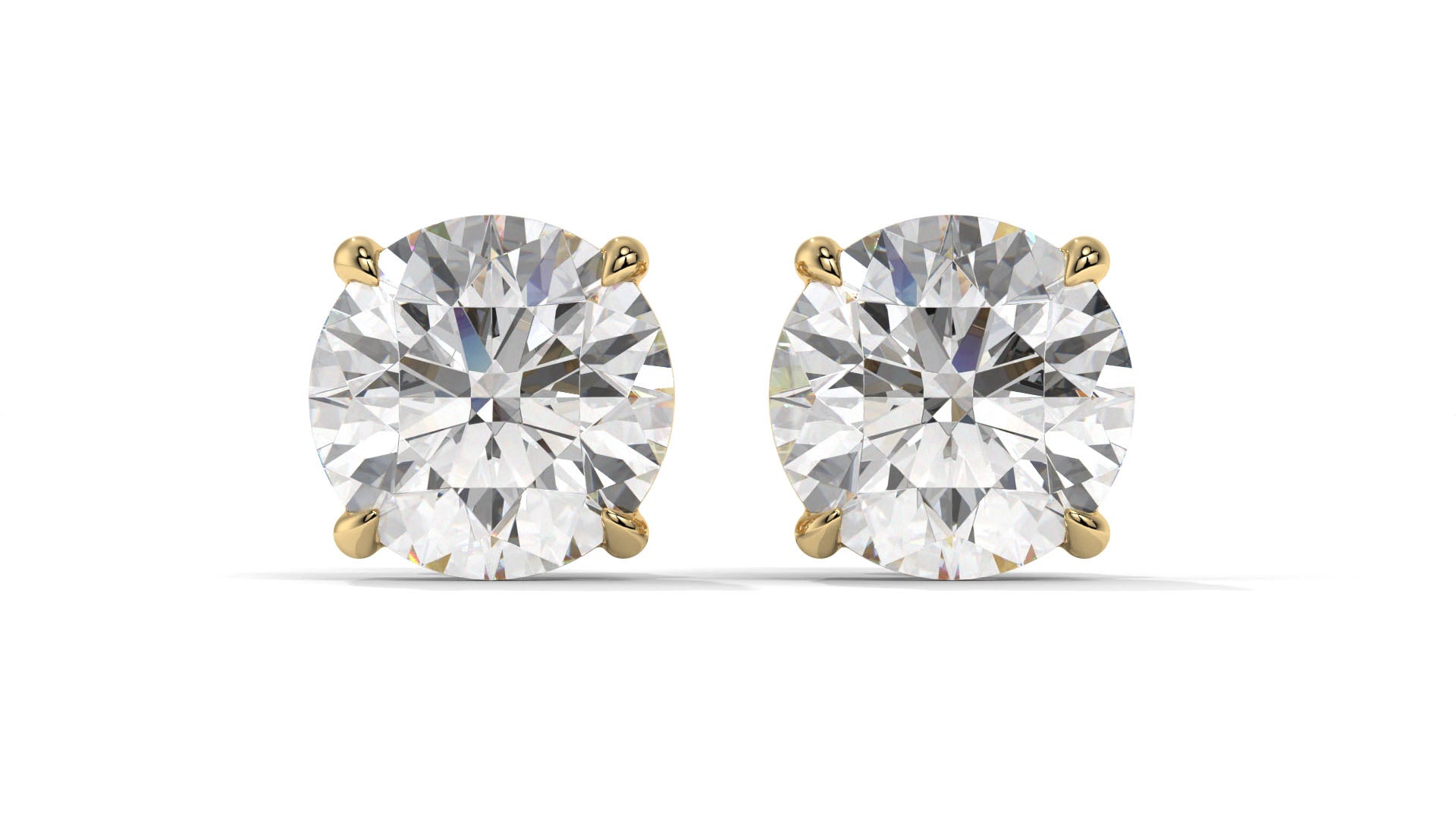 4 CTW Round Diamond Stud Earrings In 14K Yellow Gold – Brilliant-Cut, Double-Prong Basket Setting