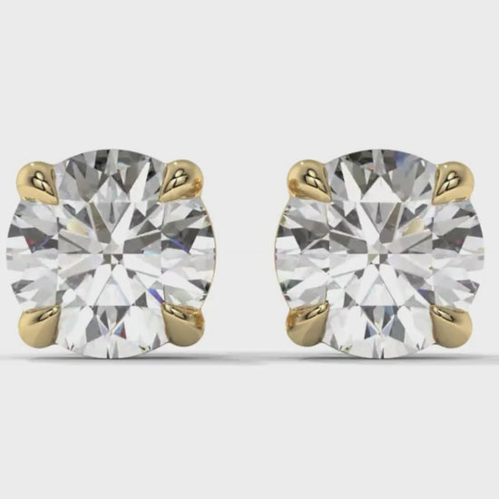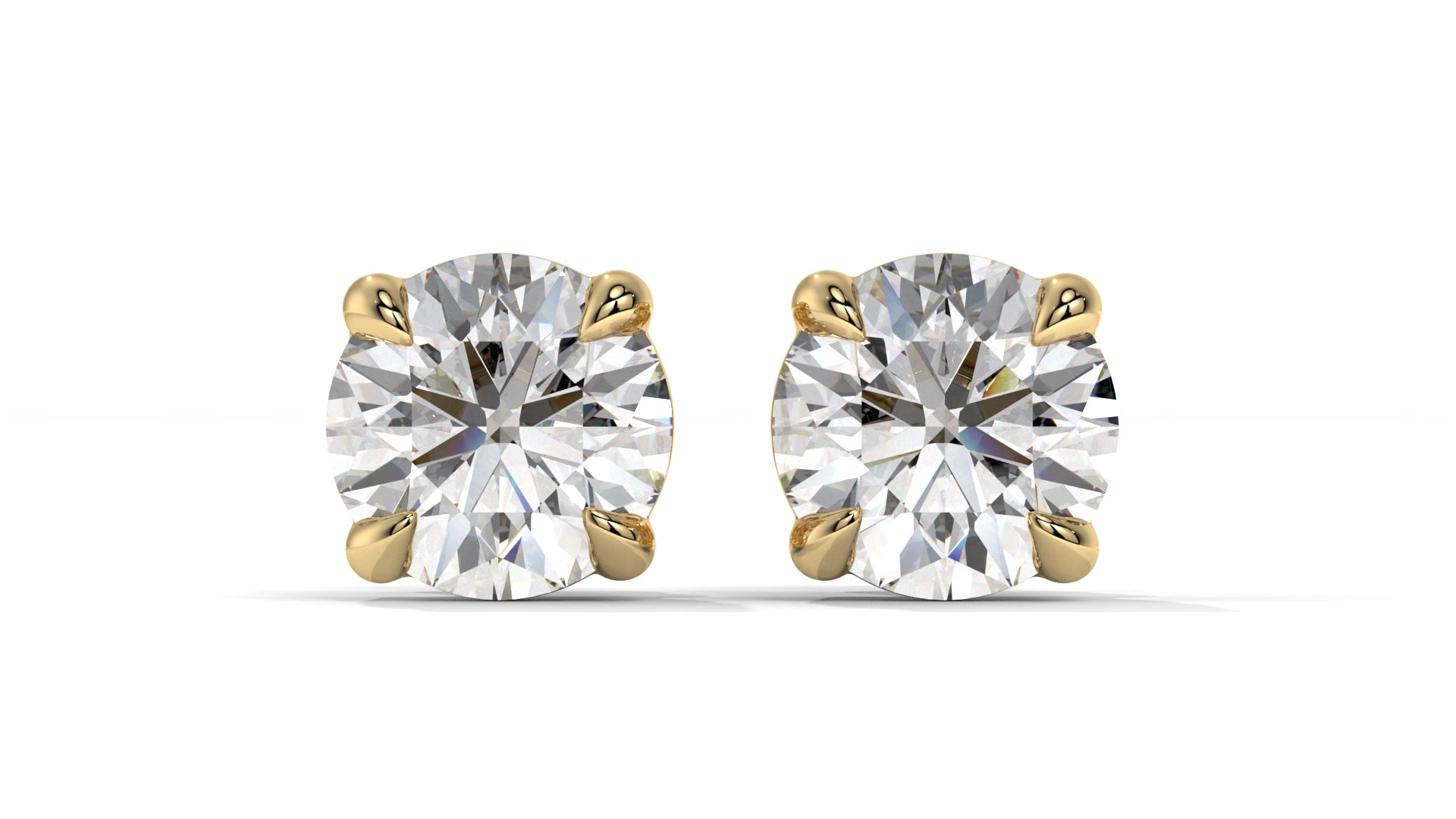 6 CTW Round Diamond Stud Earrings In 14K Yellow Gold – Brilliant-Cut Solitaire, Four-Prong Setting