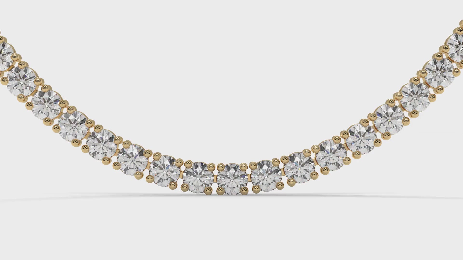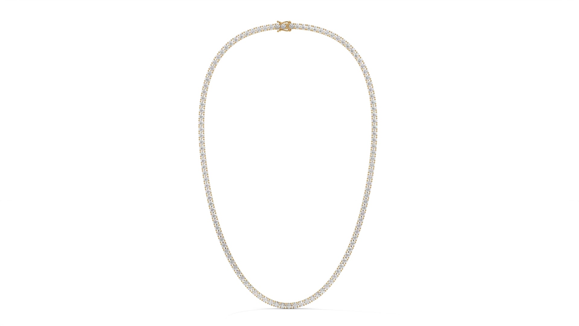 15 CTW Diamond Tennis Necklace in 14K Yellow Gold – Classic Round Cut Single Row In 17 Inch