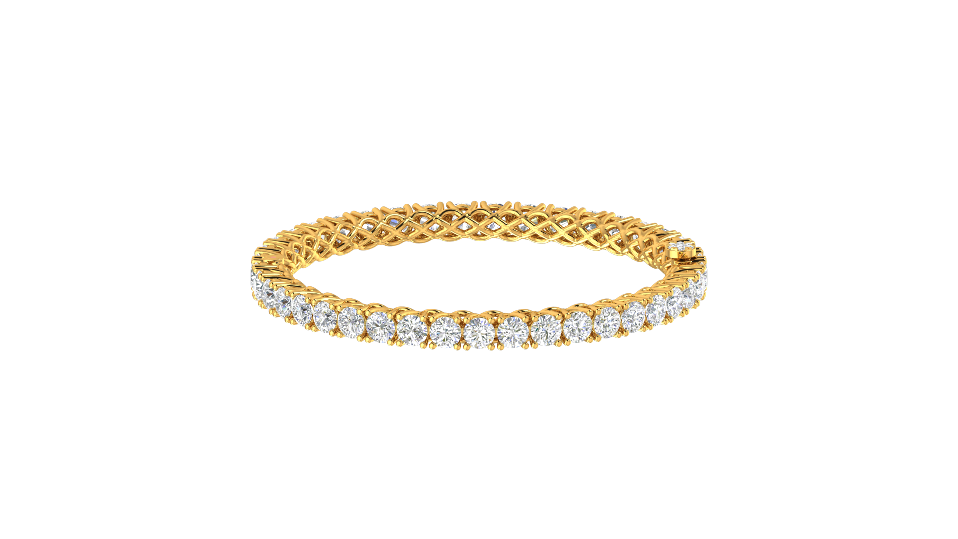 17.32 Ctw Round Cut Diamond Bangle | Lattice Diamond Bangle Set In Luxury 14K Yellow Gold