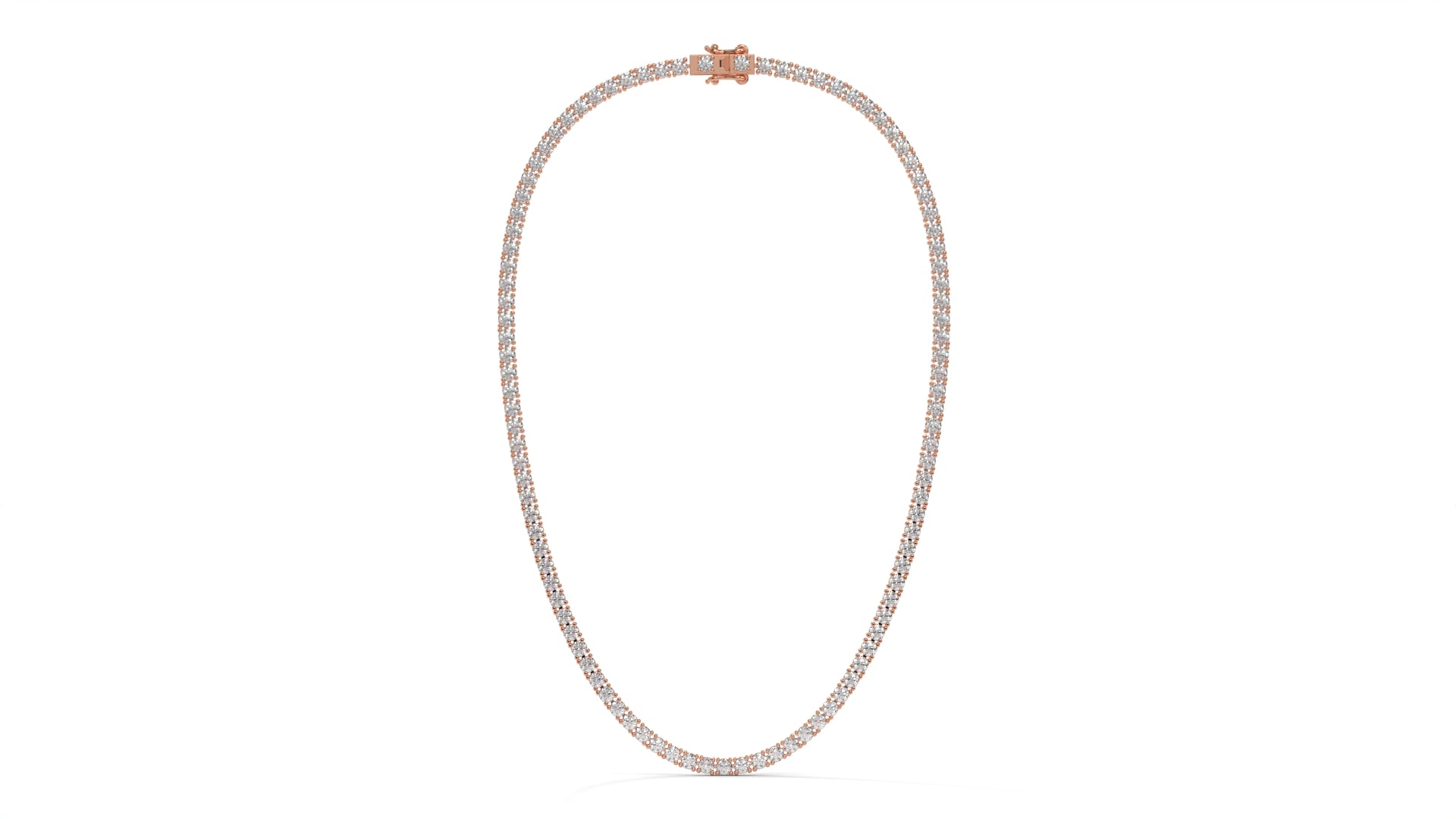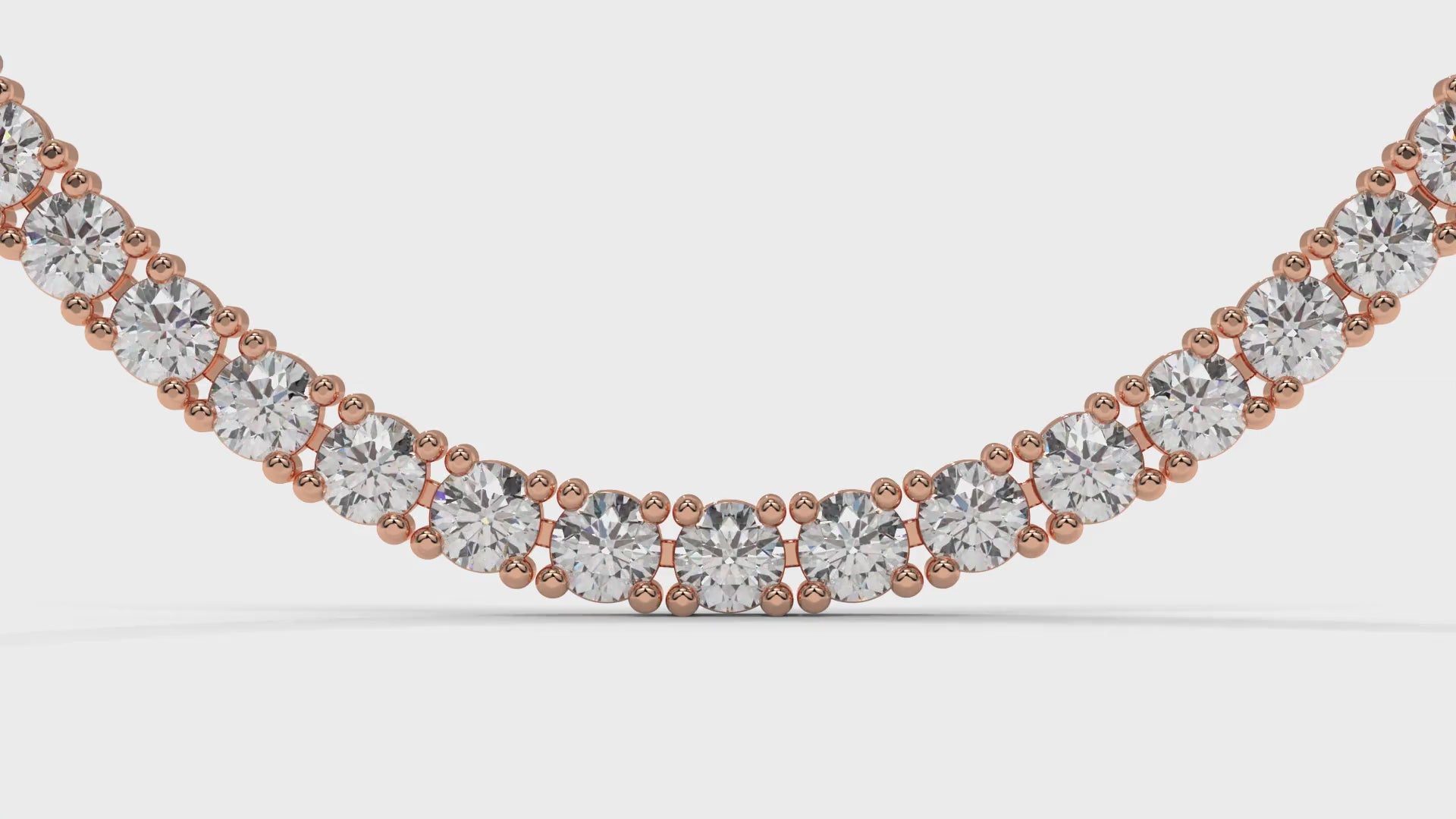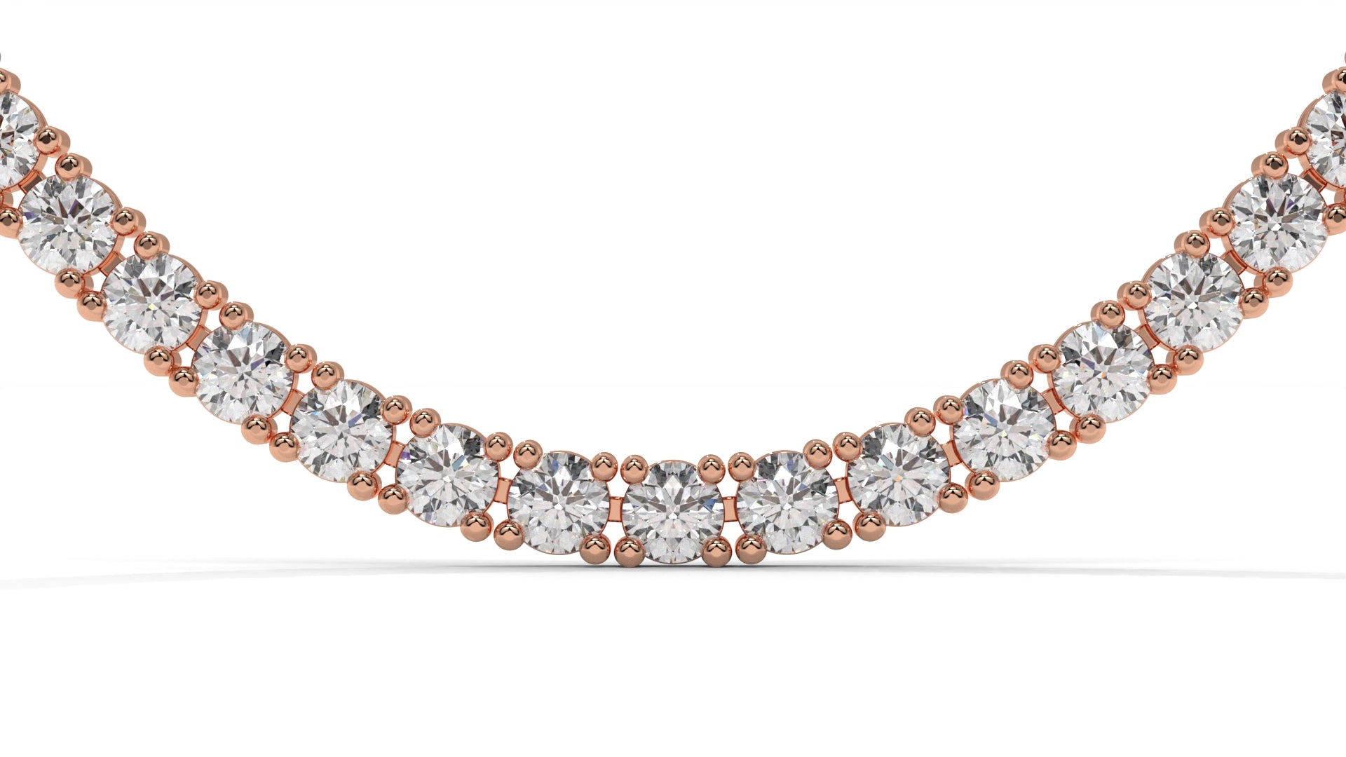 17.50 CTW Diamond Tennis Necklace in 14K Rose Gold – Classic Round Cut Single Row In 17 Inch