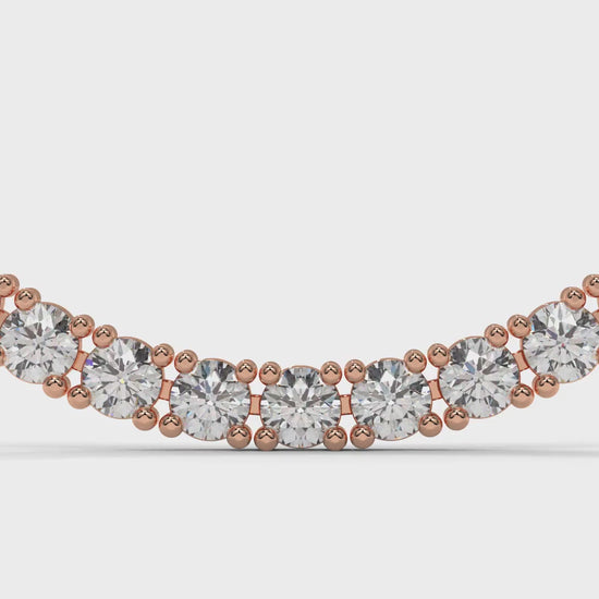 Make the ultimate luxury statement with this 17.50 Carat Total Weight Diamond Tennis Necklace. Hand-set round brilliant diamonds in 14K rose gold create a radiant single-row design that shines from every angle.