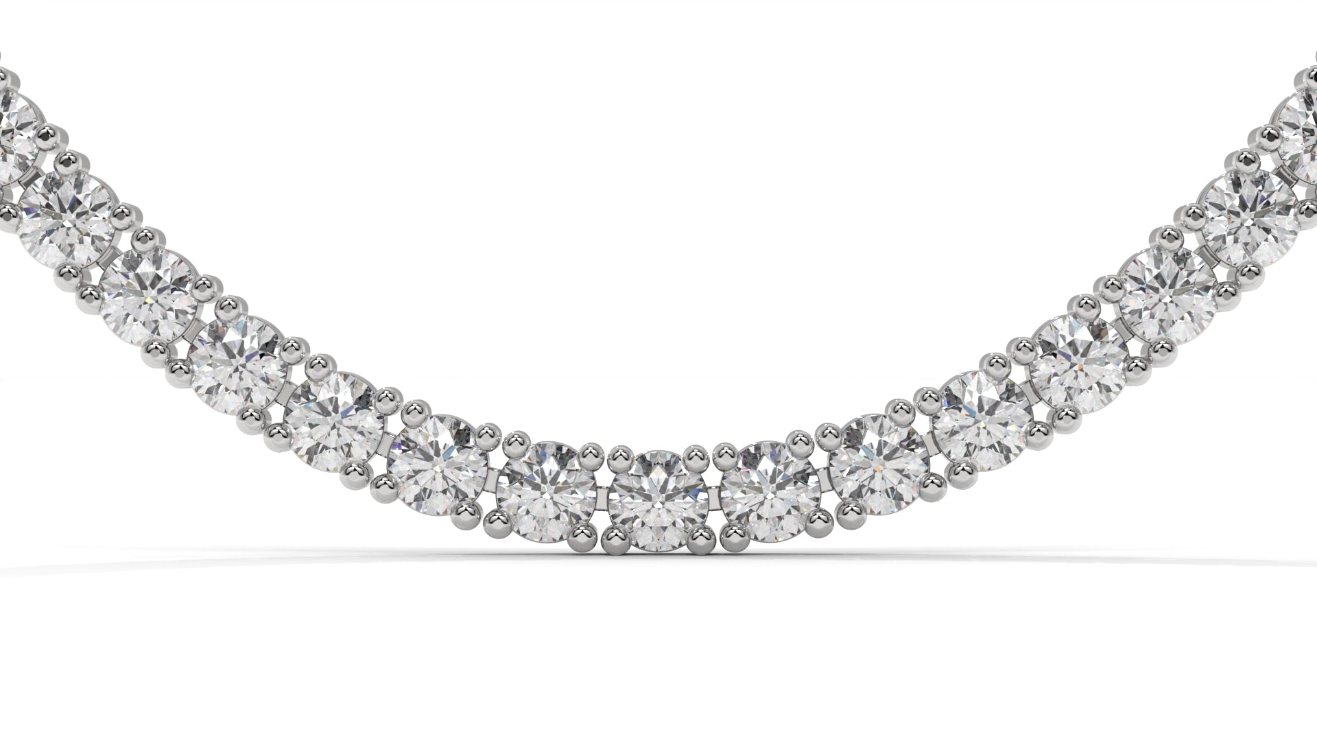 Make the ultimate luxury statement with this 17.50 Carat Total Weight Diamond Tennis Necklace. Hand-set round brilliant diamonds in 14K white gold create a radiant single-row design that shines from... Show More