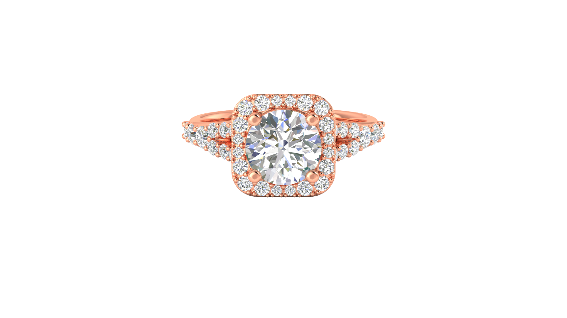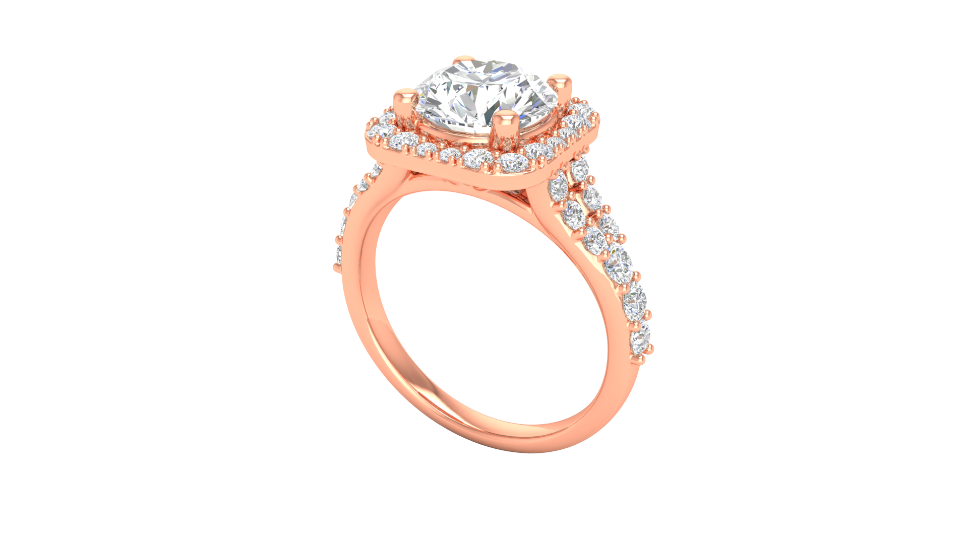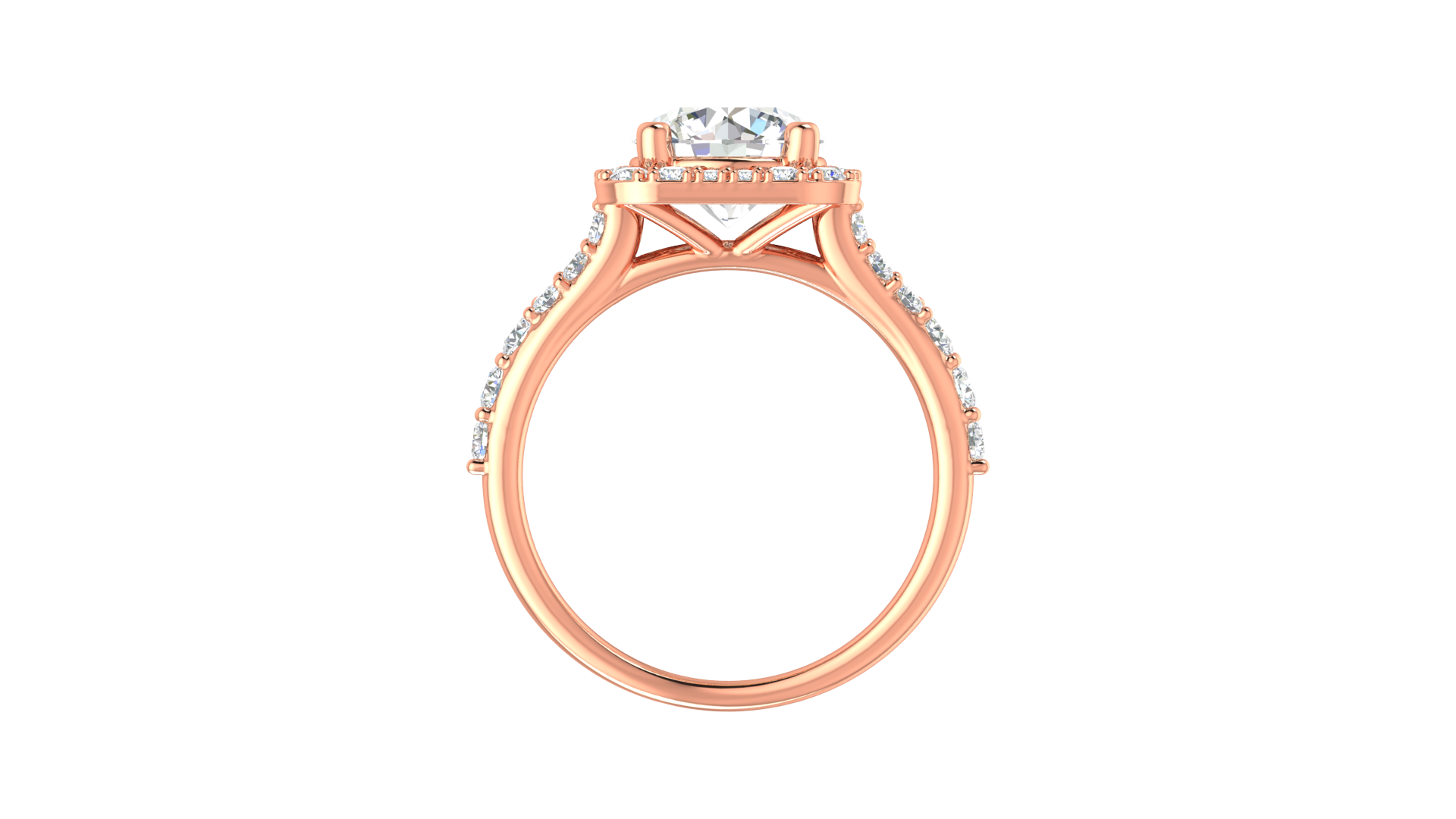 2.00 Carat Round-Cut Halo Engagement Ring With Pavé Diamond Band In 14K Rose Gold