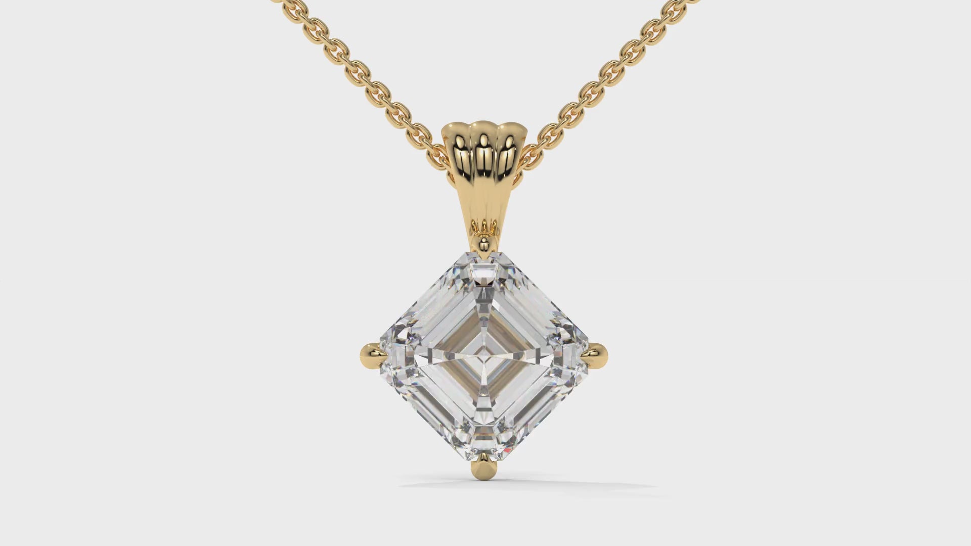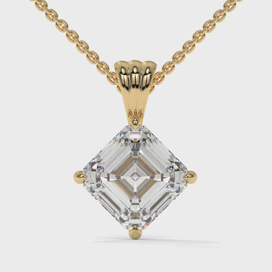 Featuring a total weight of 2.00 carats, this elegant Asscher-cut diamond solitaire pendant in 14K yellow gold is designed with a secure claw-prong setting that holds the diamond firmly in place. The clean lines of the Asscher cut paired with the polished white gold create a timeless, sophisticated style, perfect for everyday elegance or special occasions.