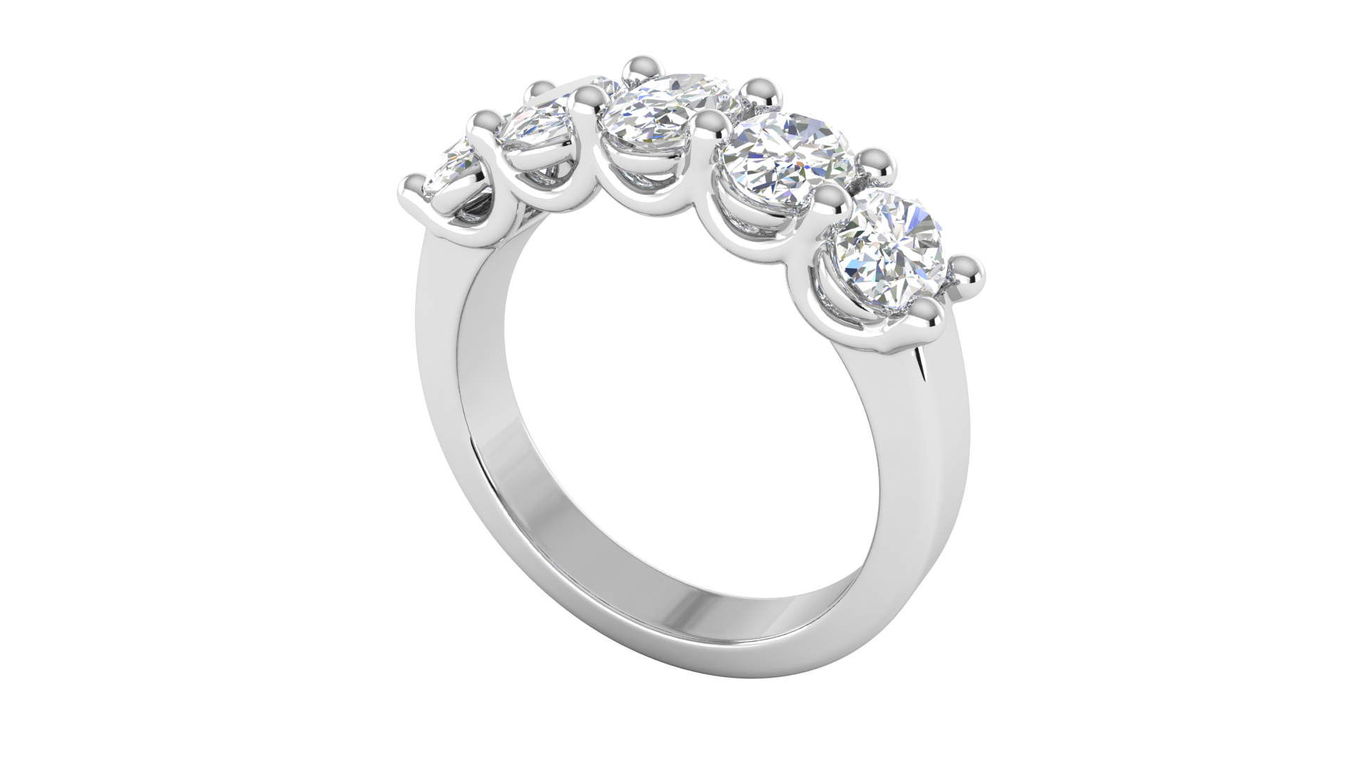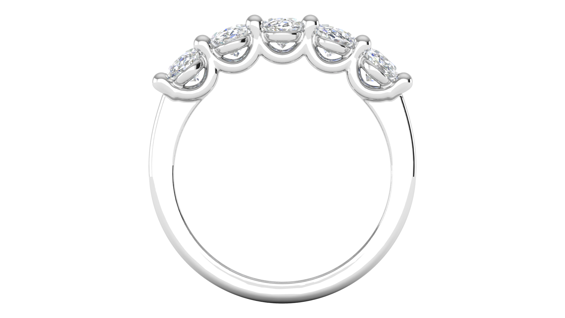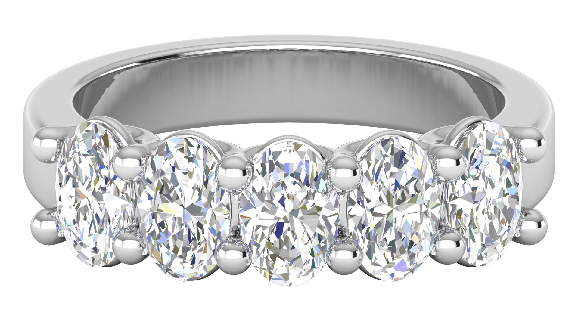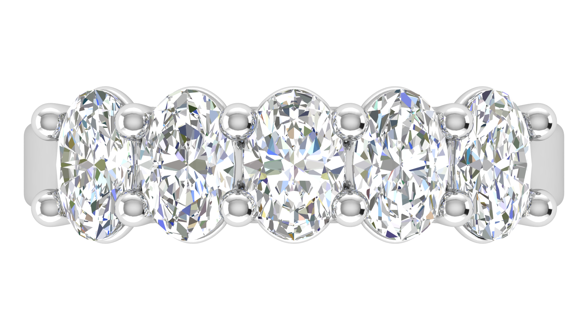2.00 Ctw Luxurious Oval Cut Five-Stone Wedding Band With U-Shape Prong Setting In 14K White Gold
