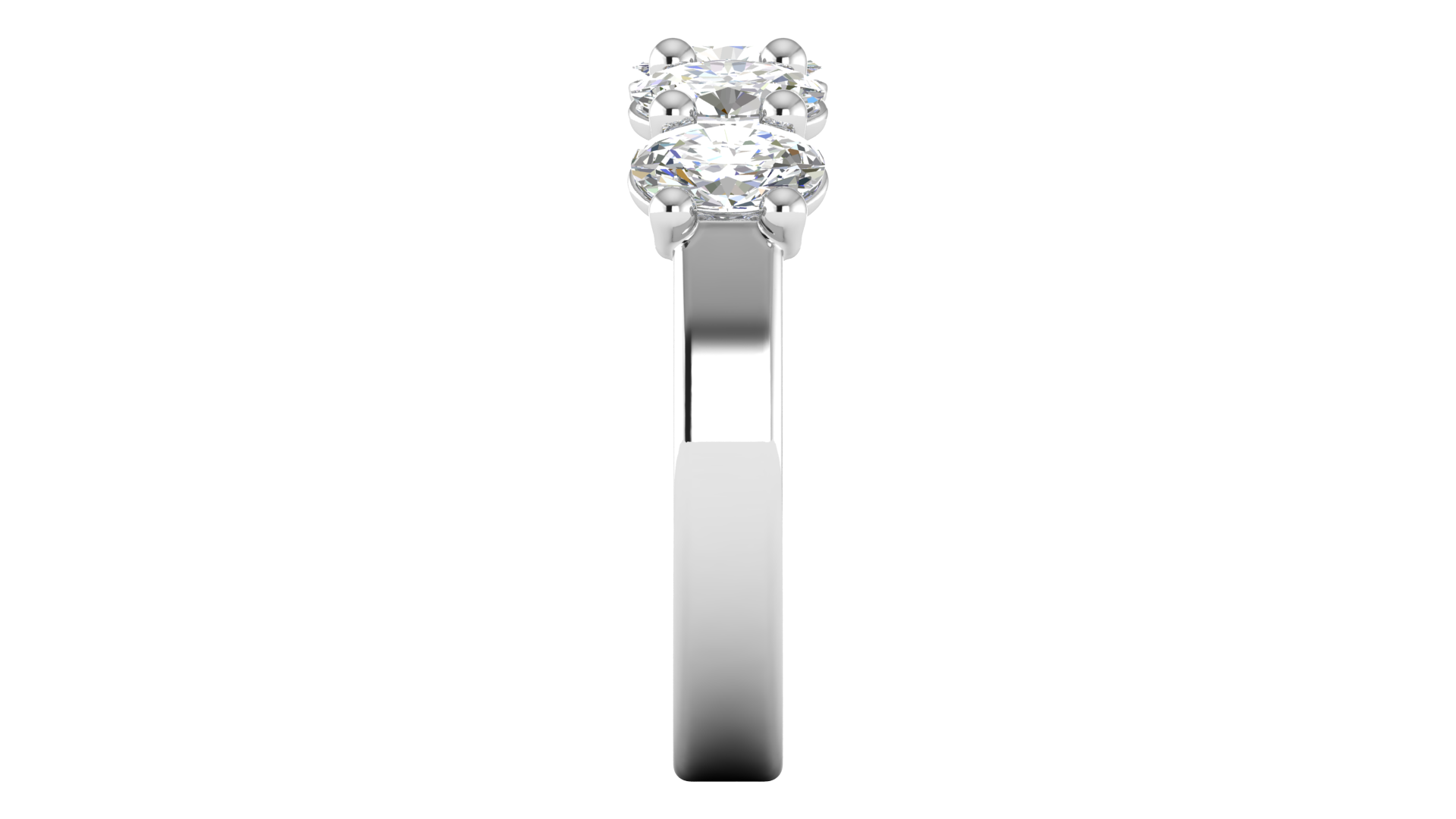 Experience unmatched elegance with this Oval-Cut Five-Stone Diamond Ring. Featuring five elongated oval-shaped diamonds set in a sleek U-shaped prong design, this ring radiates maximum brilliance and contemporary sophistication. The... Show More