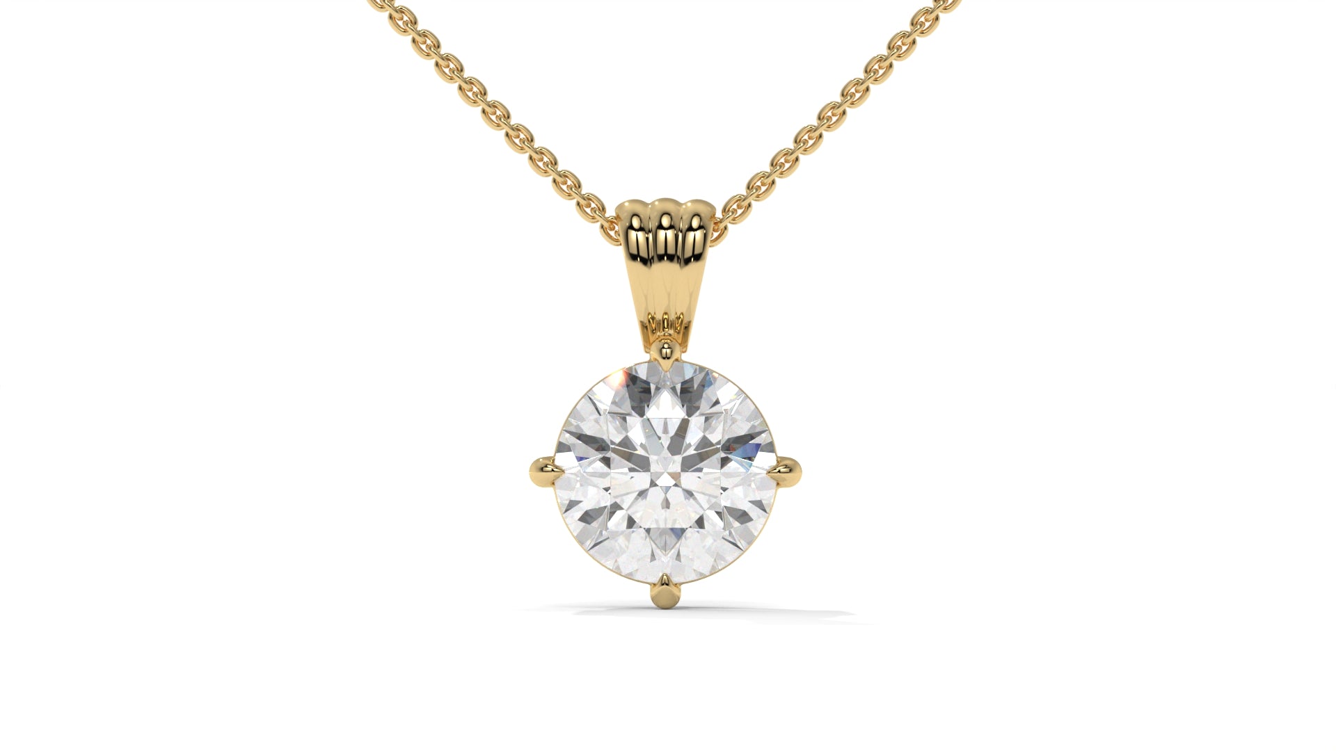 2.00 CTW Round Diamond Four-Prong Solitaire Pendant in 14K Yellow Gold – Secure Claw-Prong Setting