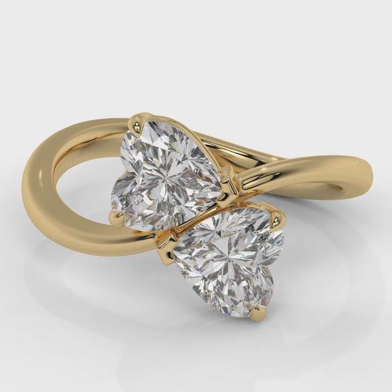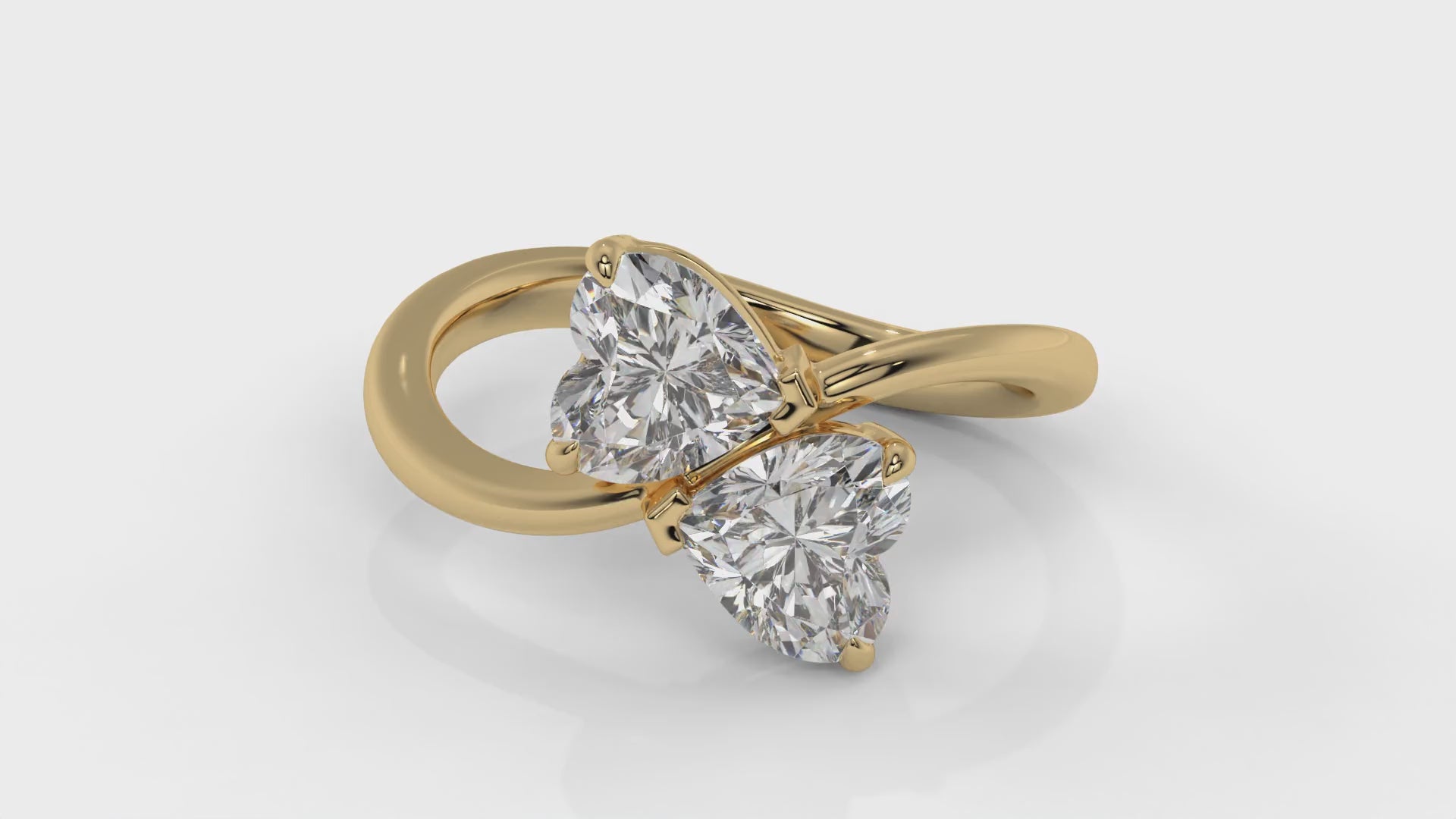 2.00 CTW Toi et Moi Diamond Ring in 14K Yellow Gold with Heart Shape Diamonds
