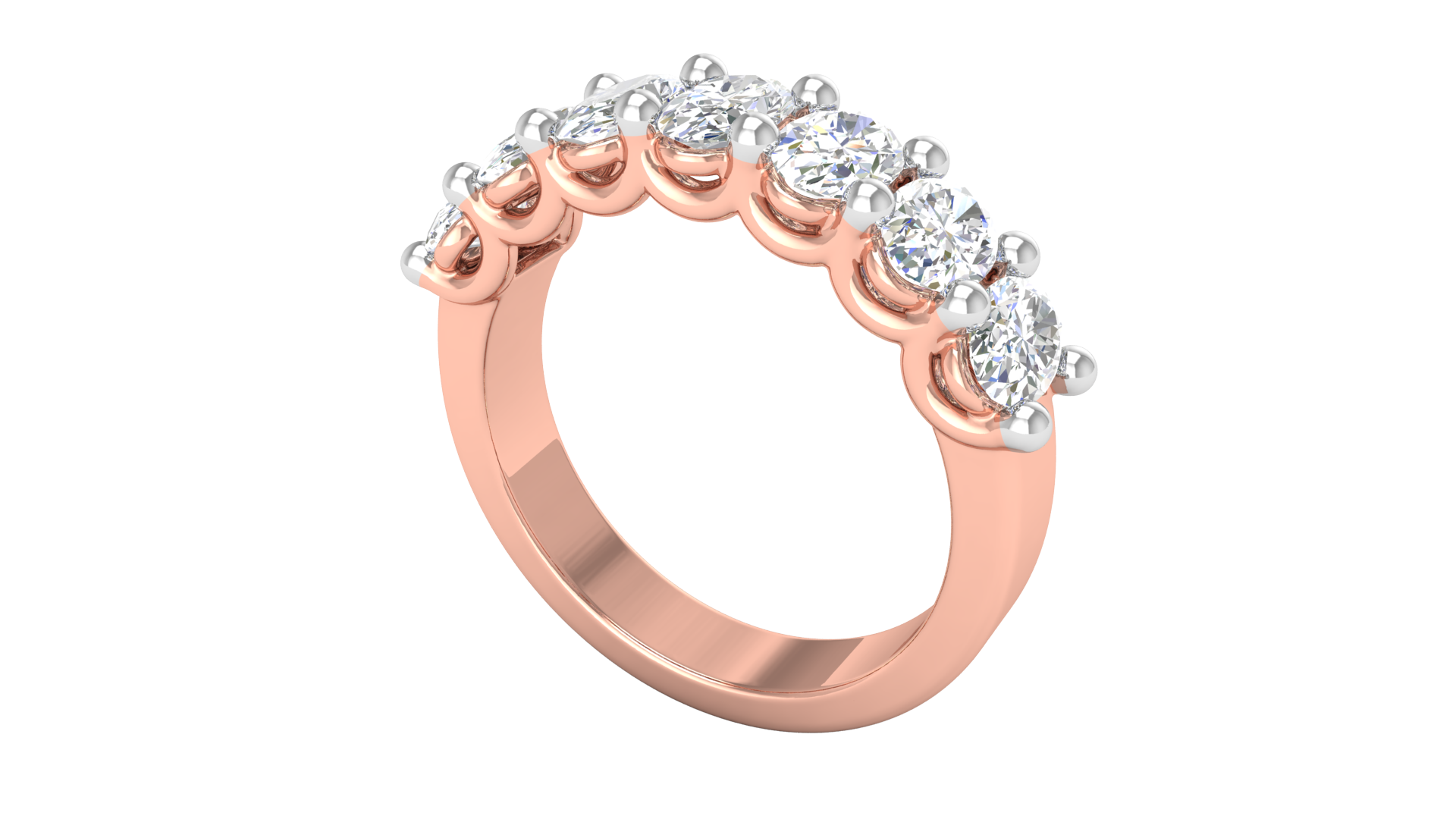 2.10 Ctw Luxurious Oval Cut Seven Stone Wedding Band With U-Shape Prong Setting In 14K Rose Gold