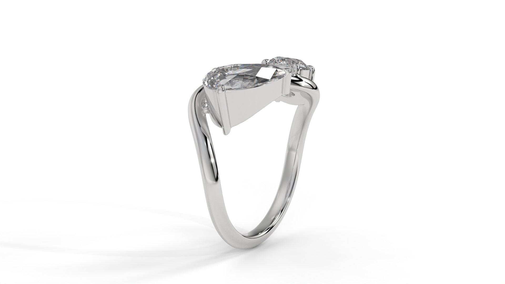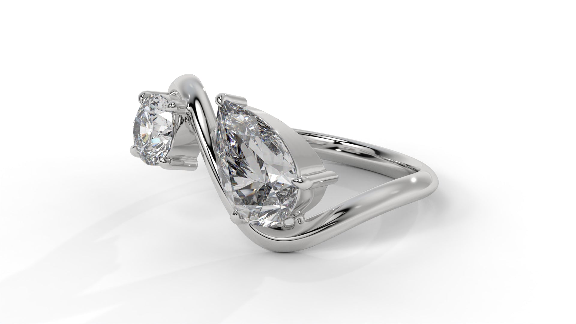 2.21 CTW Toi et Moi Diamond Ring in 14K White Gold with Round and Pear Cut Diamonds