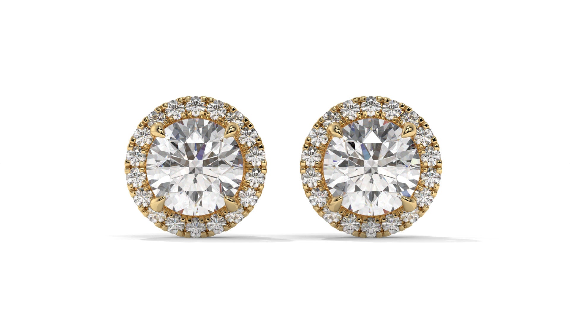 2.29 Ctw Diamond Halo Stud Earrings in 14K Yellow Gold - 2 Ct Center Stones with Accent Halo