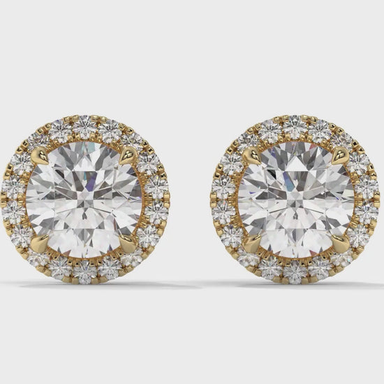 Elevate your elegance with these 2.29 Carat Total Weight Diamond Halo Stud Earrings, featuring dazzling 2.00 CTW round-cut center diamonds, perfectly encircled by 0.29 CTW of pave set accent diamonds.... Show More