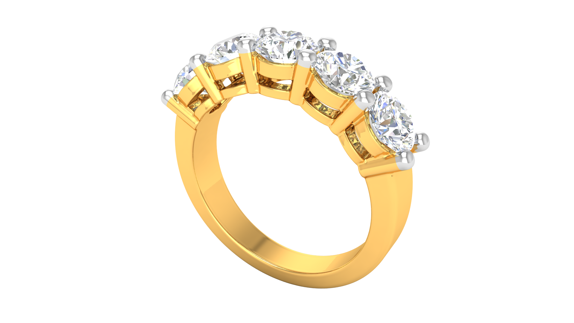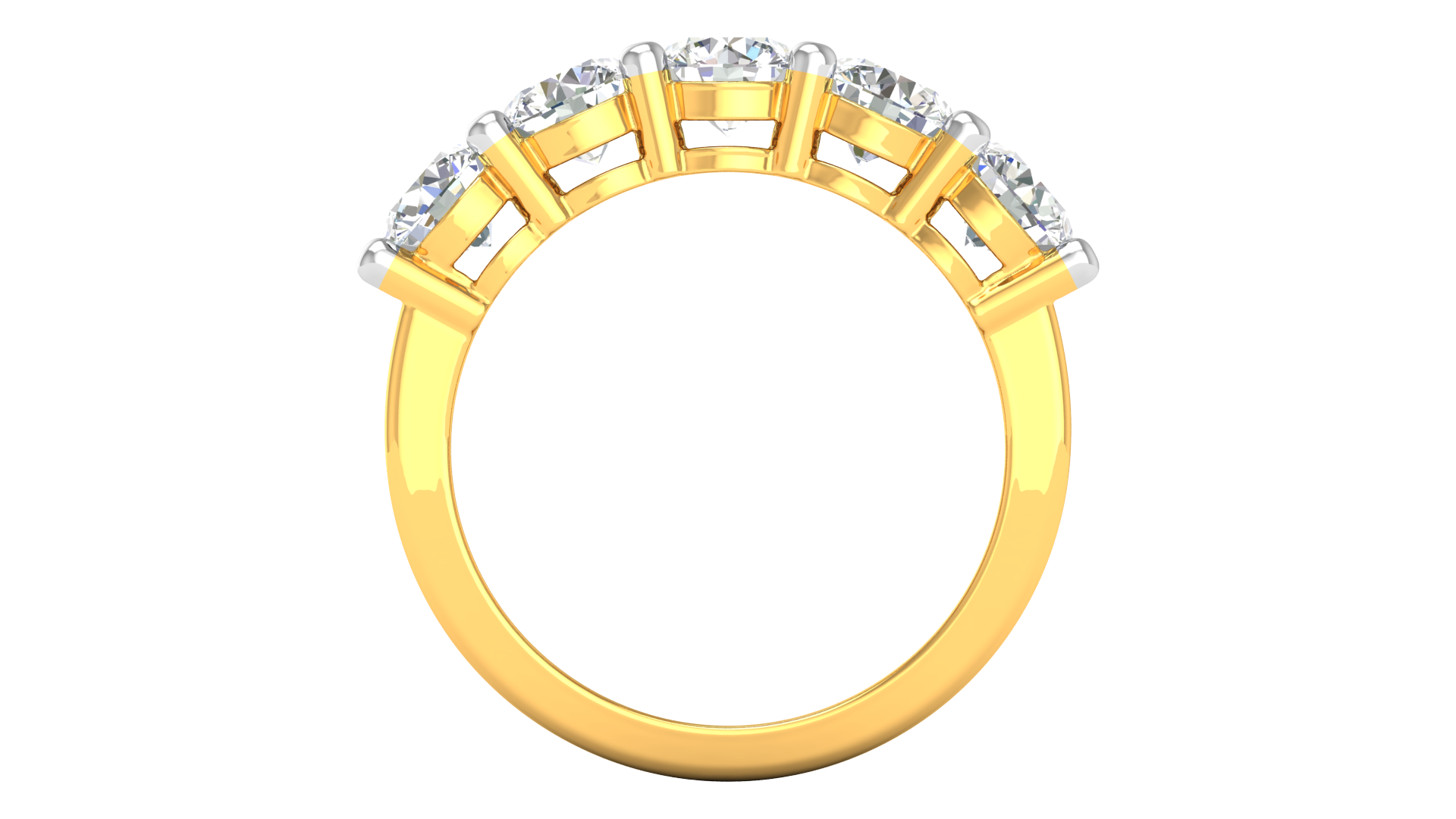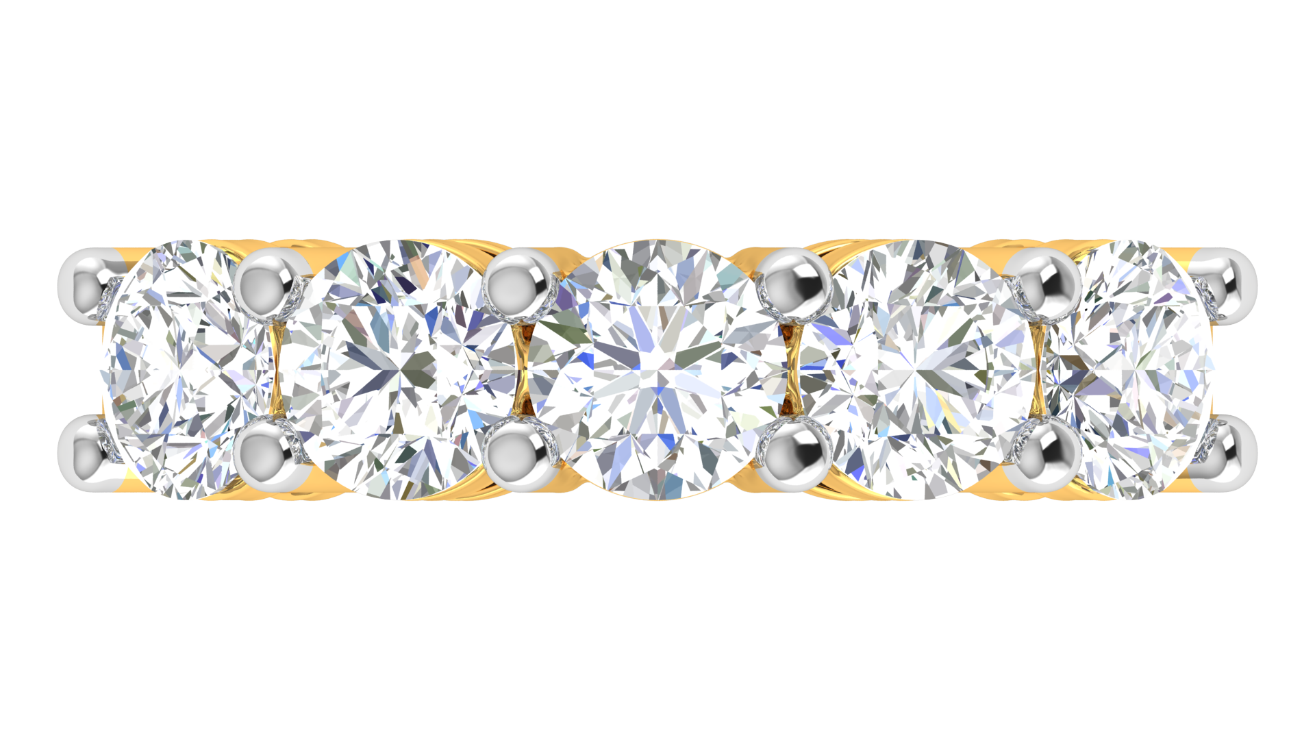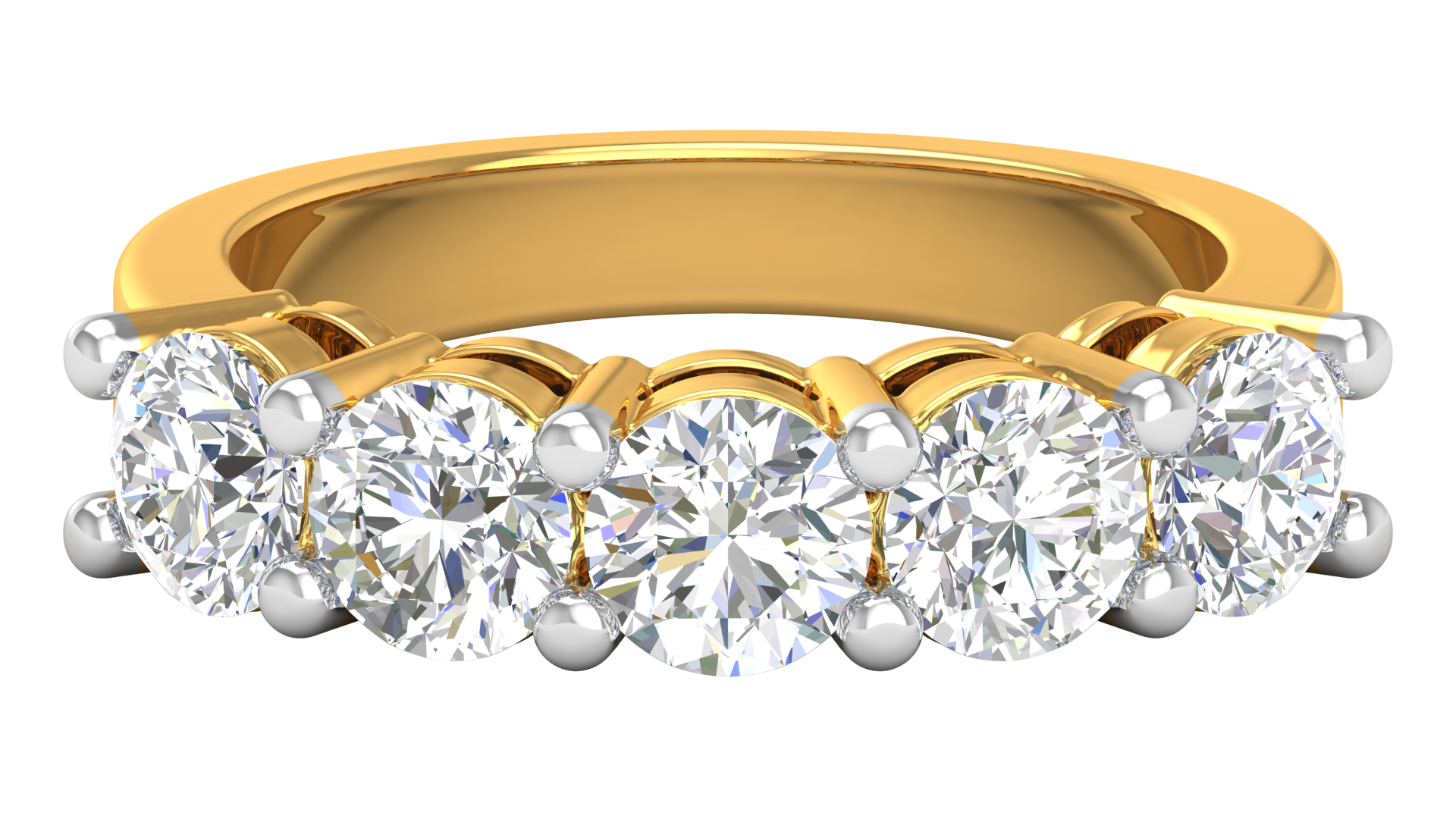 Celebrate milestones with timeless elegance with this Five-Stone Diamond Ring. Featuring five round brilliant-cut diamonds set in a classic shared-prong design, this ring embodies the perfect blend of brilliance and sophistication. Each diamond is carefully selected for its exceptional sparkle and set in white gold, ensuring a seamless, elegant look. Perfect as an anniversary gift or a symbol of enduring love, this ring represents cherished moments and an unbreakable bond. Its versatile design makes it a stunning addition to any jewelry collection or a meaningful token for life's special occasions.