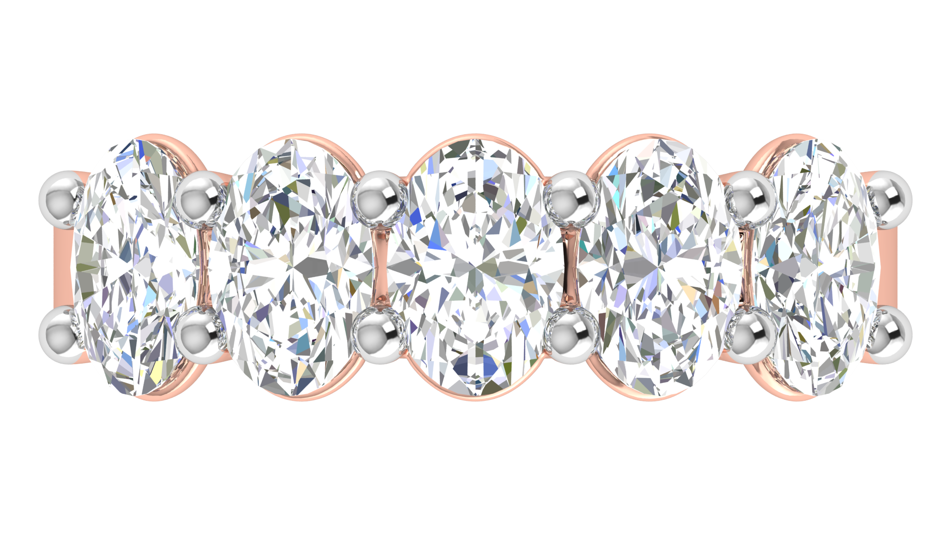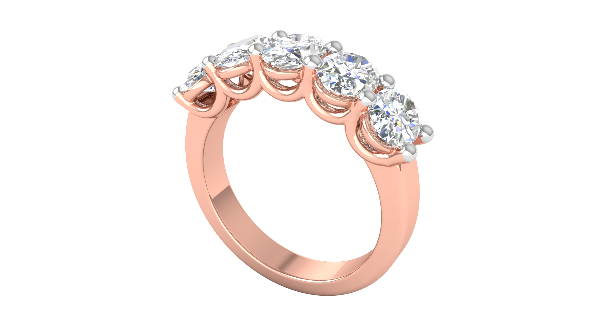 2.50 Ctw Luxurious Oval Cut Five-Stone Wedding Band With U-Shape Prong Setting In 14K Rose Gold