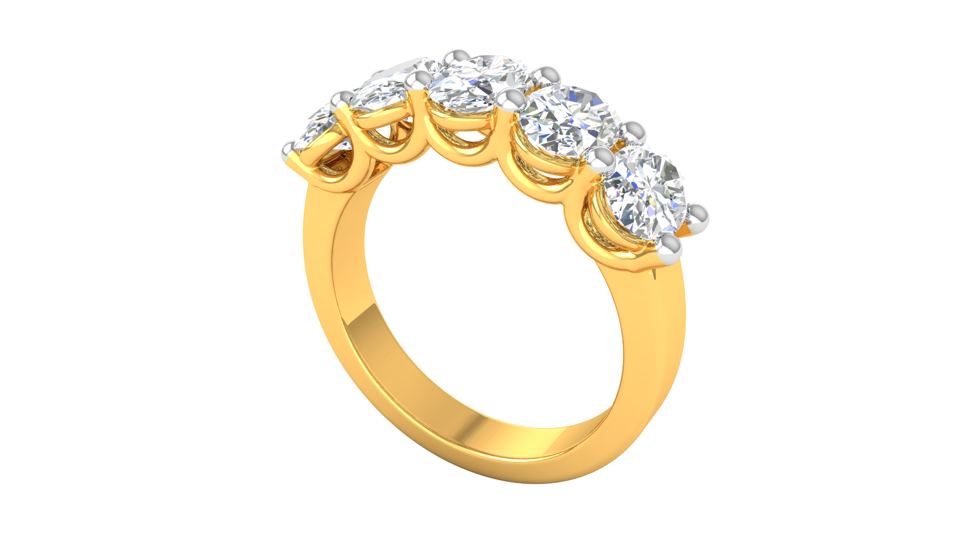 Experience unmatched elegance with this Oval-Cut Five-Stone Diamond Ring. Featuring five elongated oval-shaped diamonds set in a sleek U-shaped prong design, this ring radiates maximum brilliance and contemporary sophistication. The... Show More
