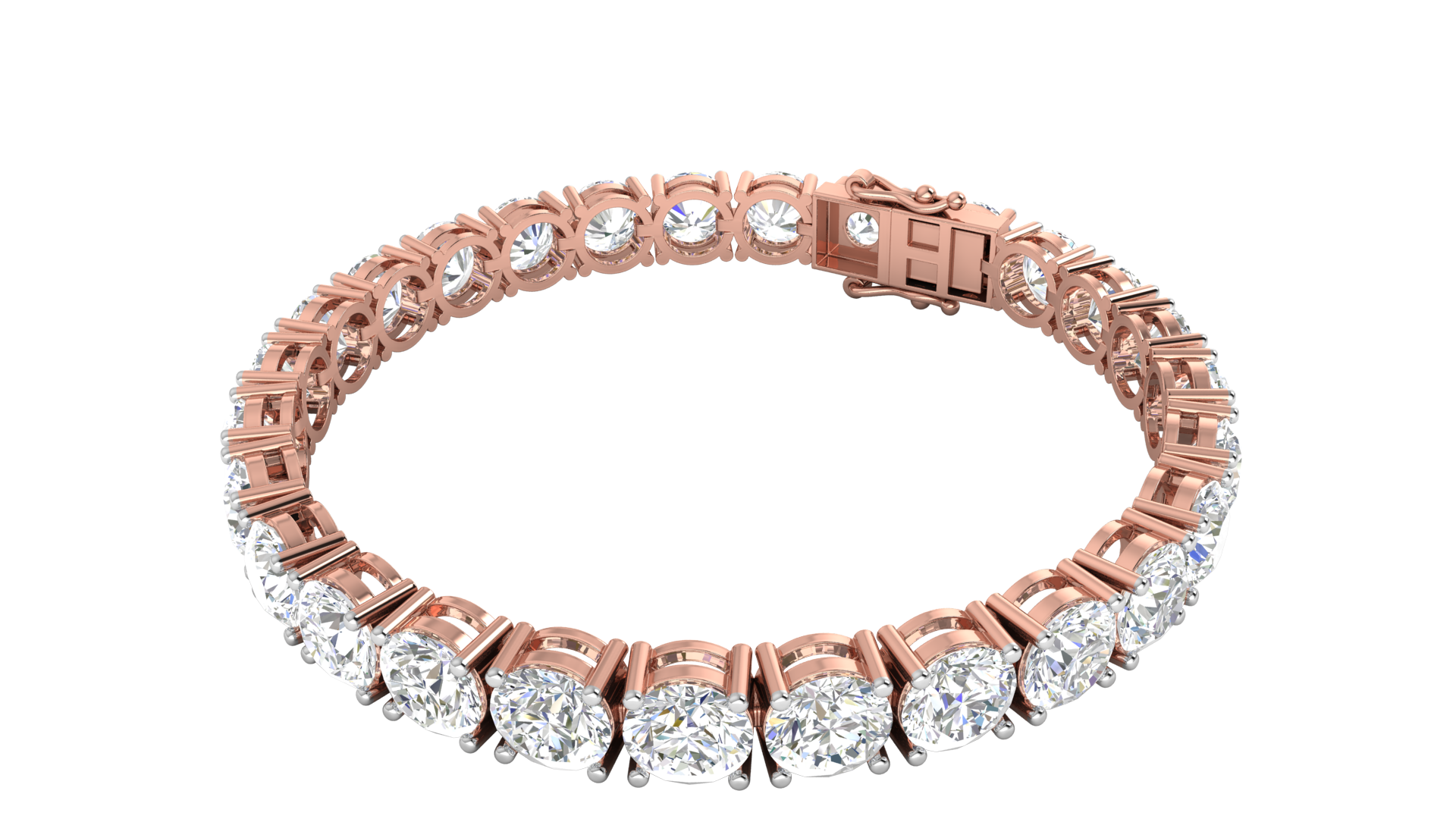 27.00 Ctw Round Brilliant Diamond Tennis Bracelet In 14K Rose Gold