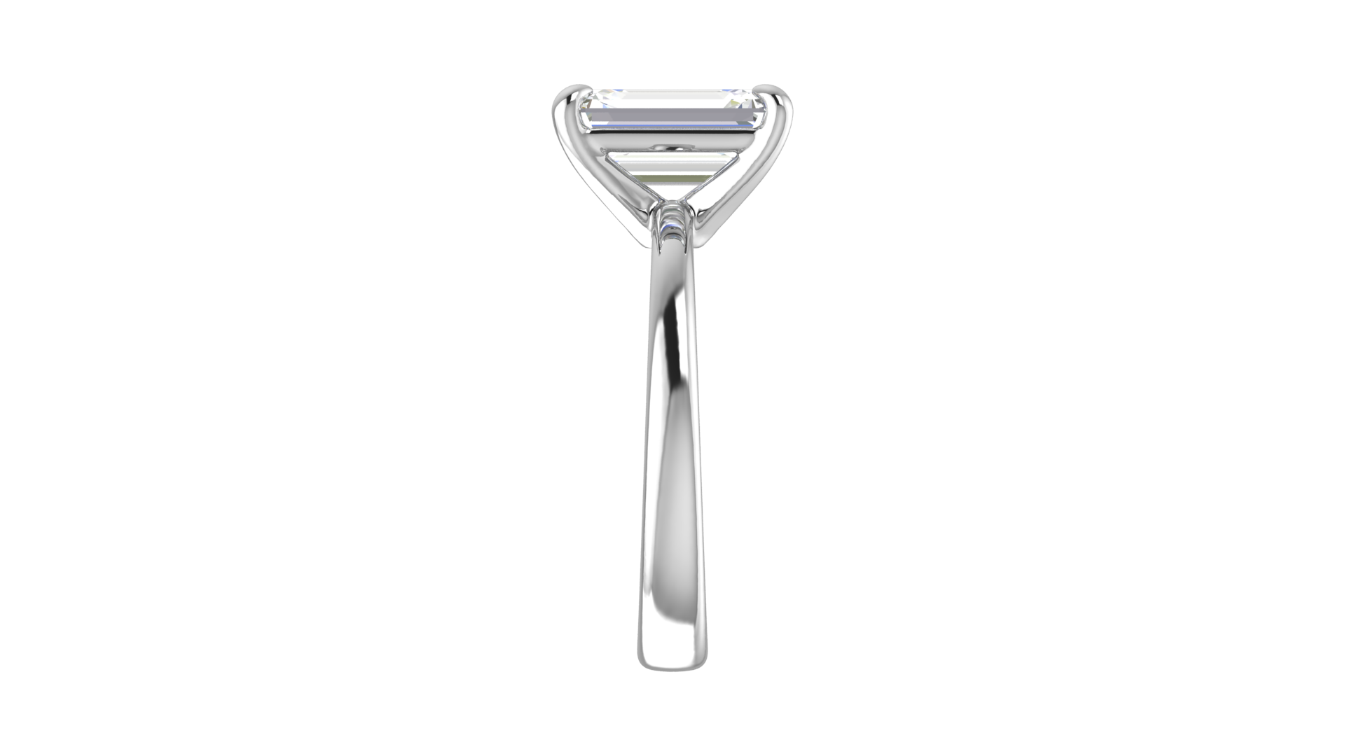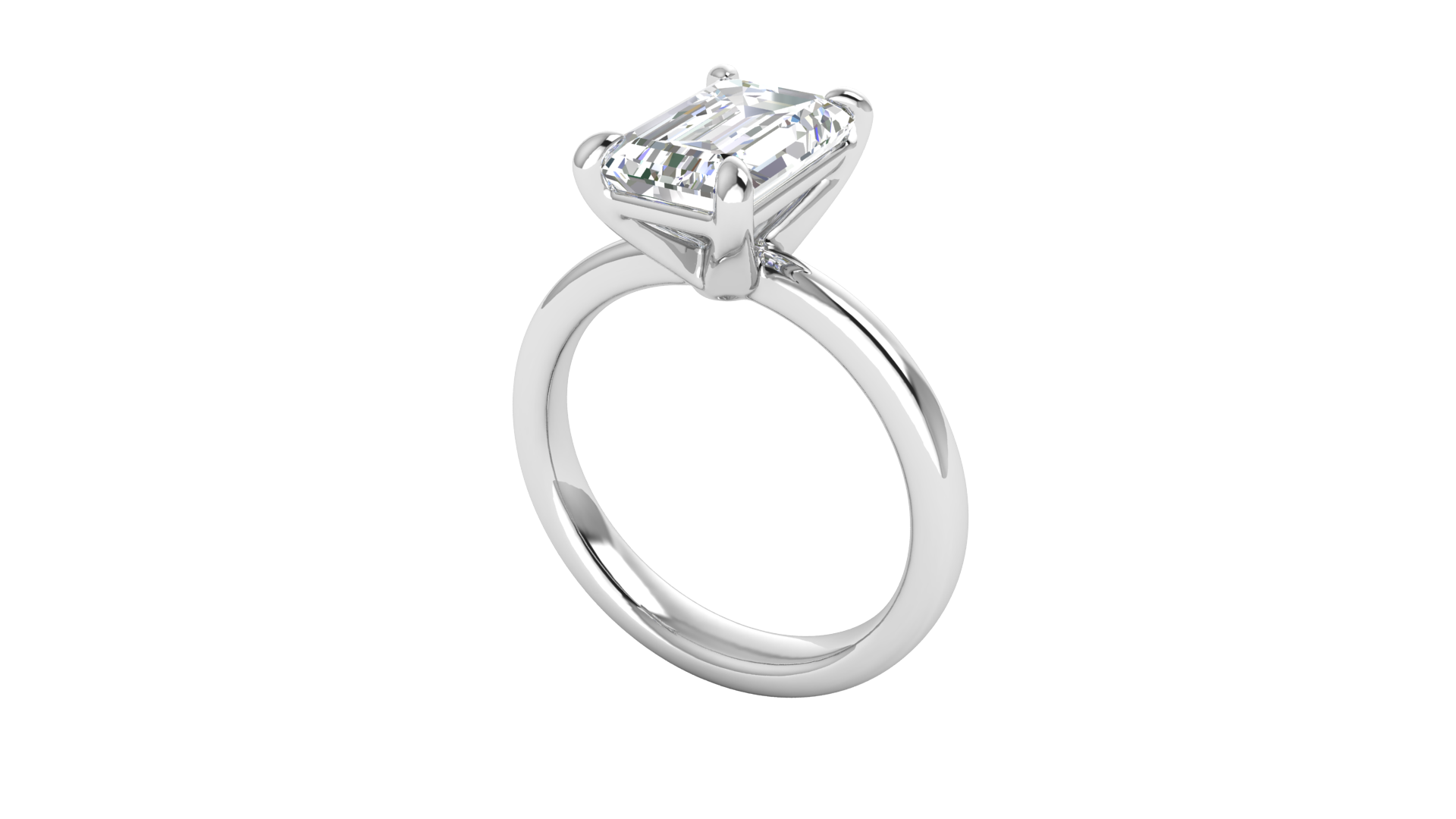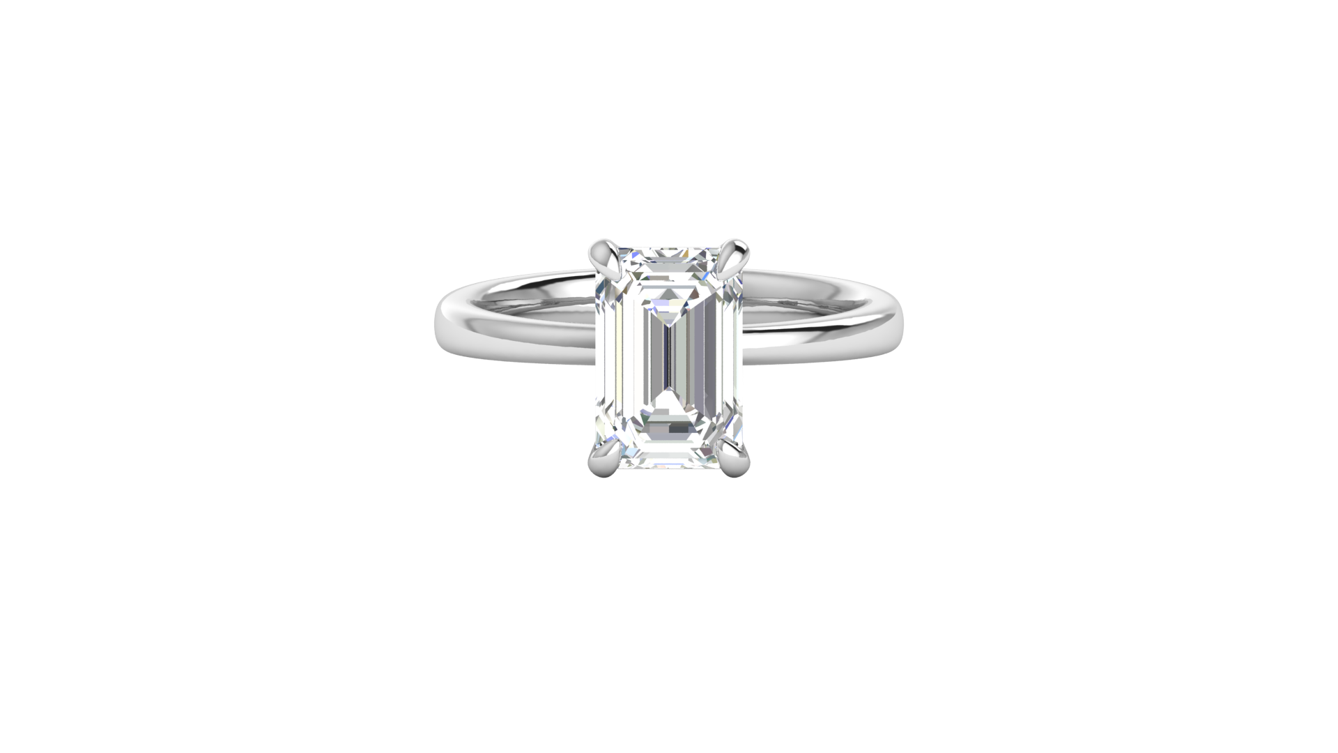 This captivating 3.00 CTW emerald-cut solitaire engagement ring offers a perfect blend of sophistication and luxury. The elongated emerald-cut diamond, securely held in a four-prong setting, sparkles brilliantly against the sleek white gold band. A timeless choice for those who desire a bold and elegant design.